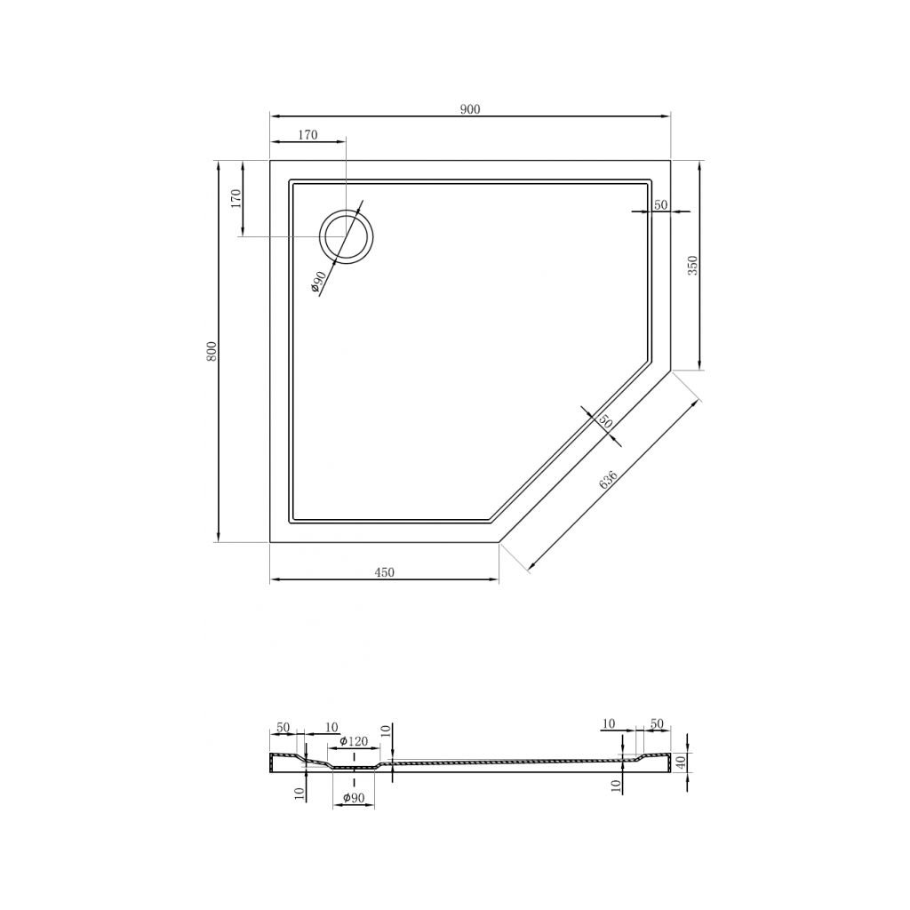 Mexen Flow, päťuholníková sprchová vanička slim ľavá 90 x 80 cm, čierna matná - 46P708090L
