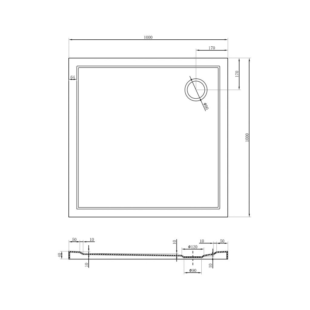 Mexen Flow, štvorcová sprchová vanička slim 100 x 100 cm, biela lesklá, 46S101010