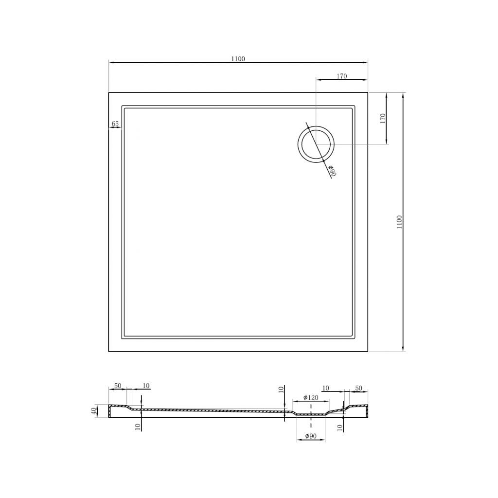 Mexen Flow, štvorcová sprchová vanička slim 110 x 110 cm, čierna matná, 46S701111