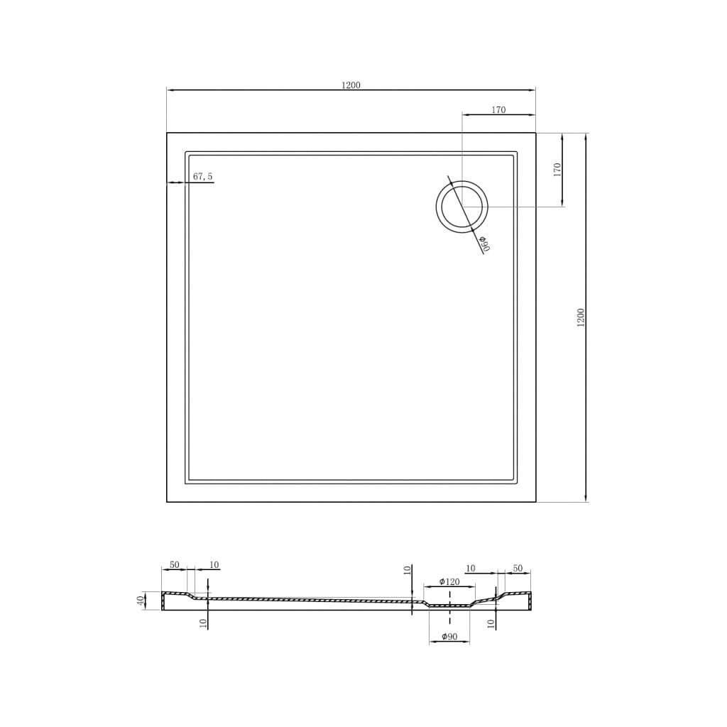 Mexen Flow, štvorcová sprchová vanička slim 120 x 120 cm, biela lesklá, 46S101212