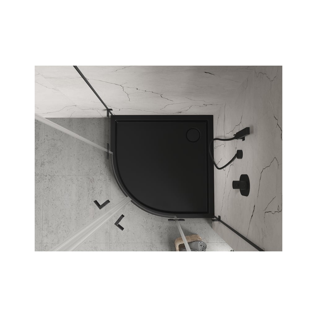 Mexen Flow+ štvrťkruhová sprchová vanička 100 x 100 cm, čierna matná, 46Q701010H