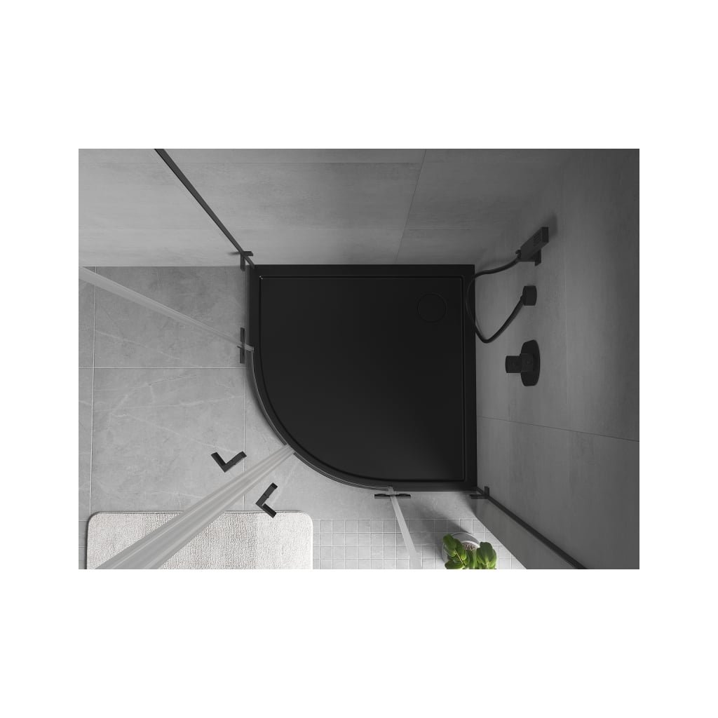 Mexen Flow, štvrťkruhová sprchová vanička slim 100 x 100 cm, čierna matná, 46Q701010