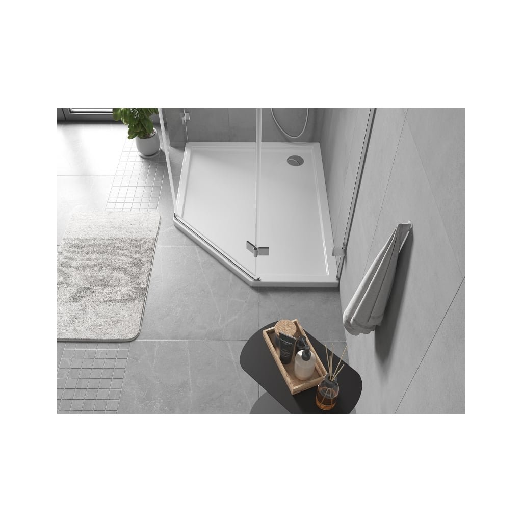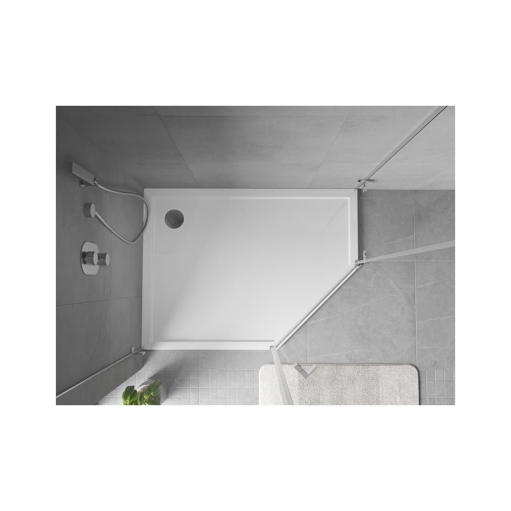 Mexen Flow Slim, ľavostranná päťuholníková sprchová vanička 90 x 80 cm, biela lesklá, 46P108090L