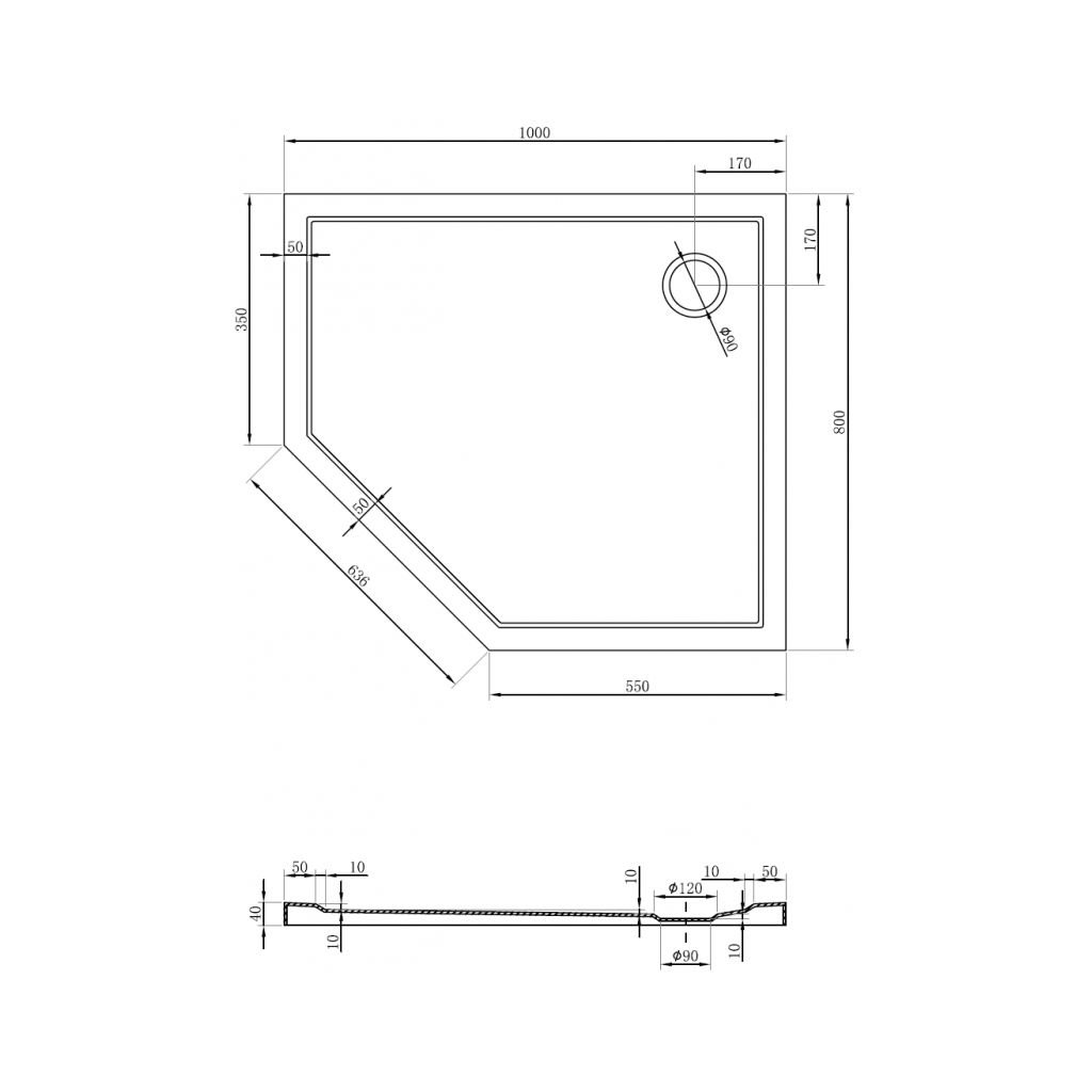 Mexen Flow Slim, pravostranná päťuholníková sprchová vanička 100 x 80 cm, biela lesklá, 46P108010R