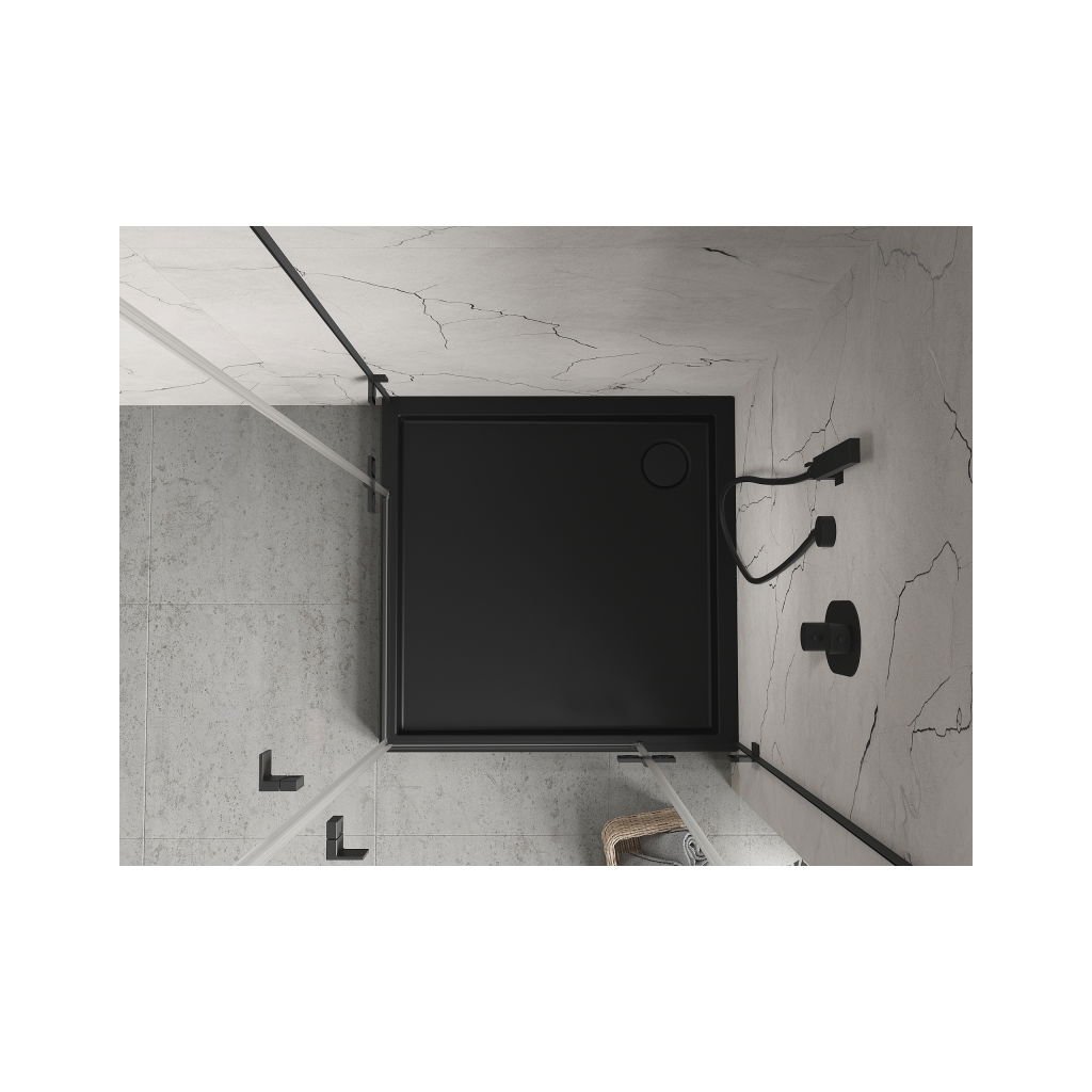 Mexen Flow+, štvorcová sprchová vanička 70 x 70 cm, čierna matná, 46S7070H