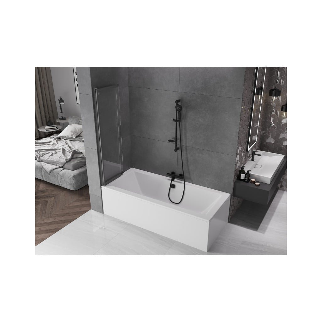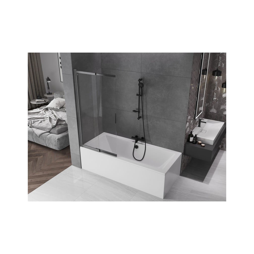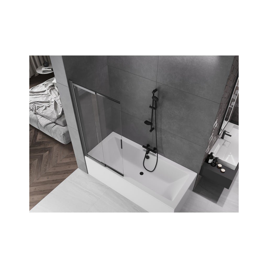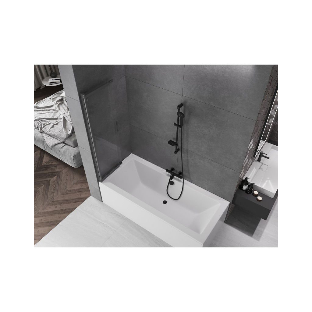Mexen Fox, 2-krídlová posuvná vaňová zástena 85 × 150 cm, 5mm číre sklo, grafitový profil, 891-085-002-66-00