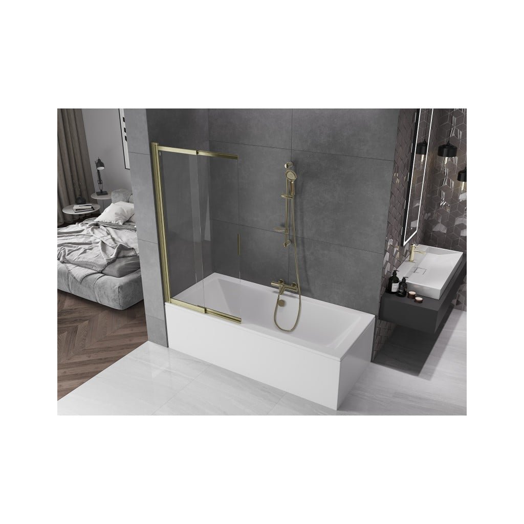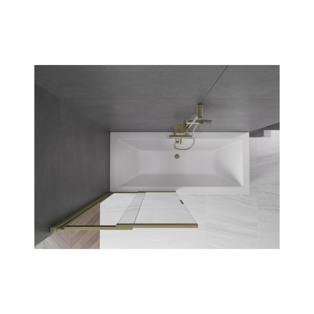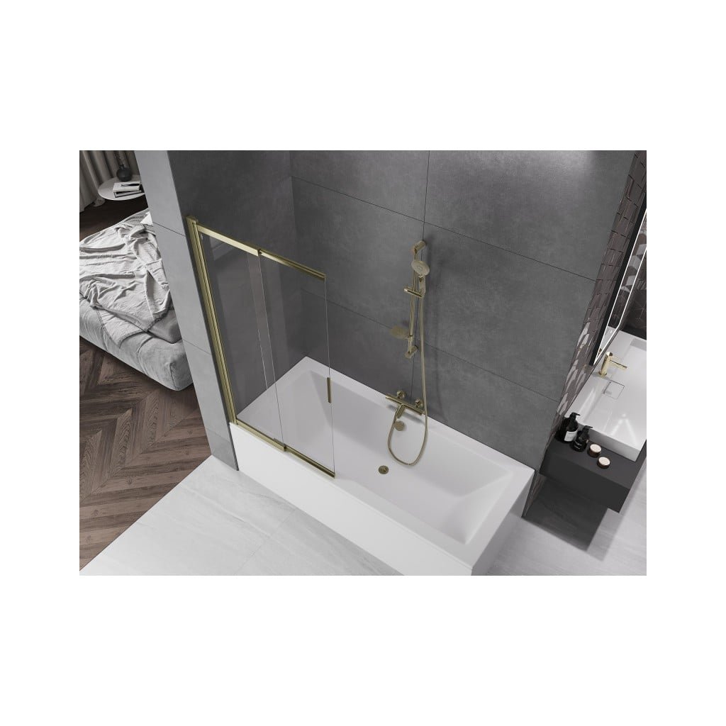 Mexen Fox, 2-krídlová posuvná vaňová zástena 85 × 150 cm, 5mm číre sklo, zlatý matný profil, 891-085-002-55-00