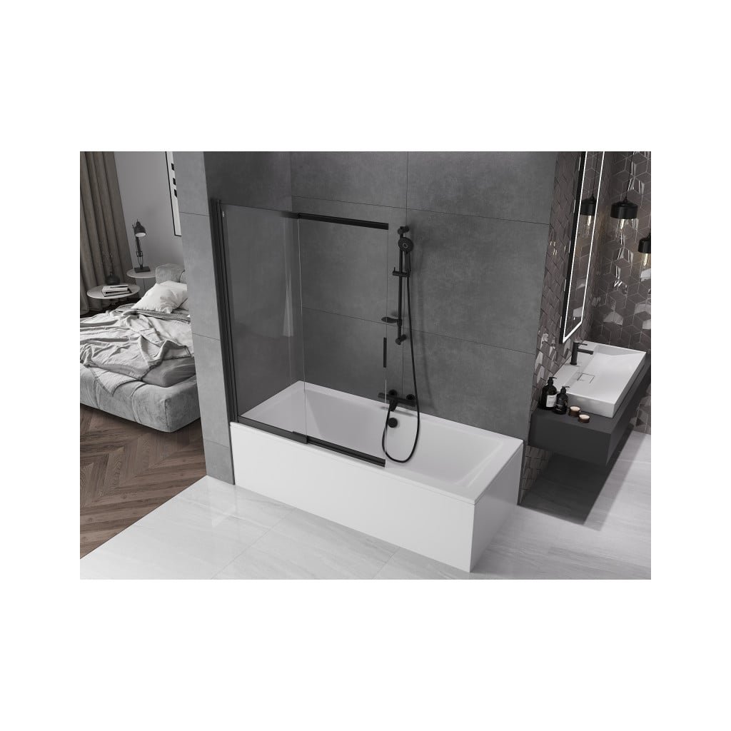 Mexen Fox, 2-krídlová vaňová zástena 120x150 cm, 5mm číre sklo, čierny profil, 891-120-002-70-00