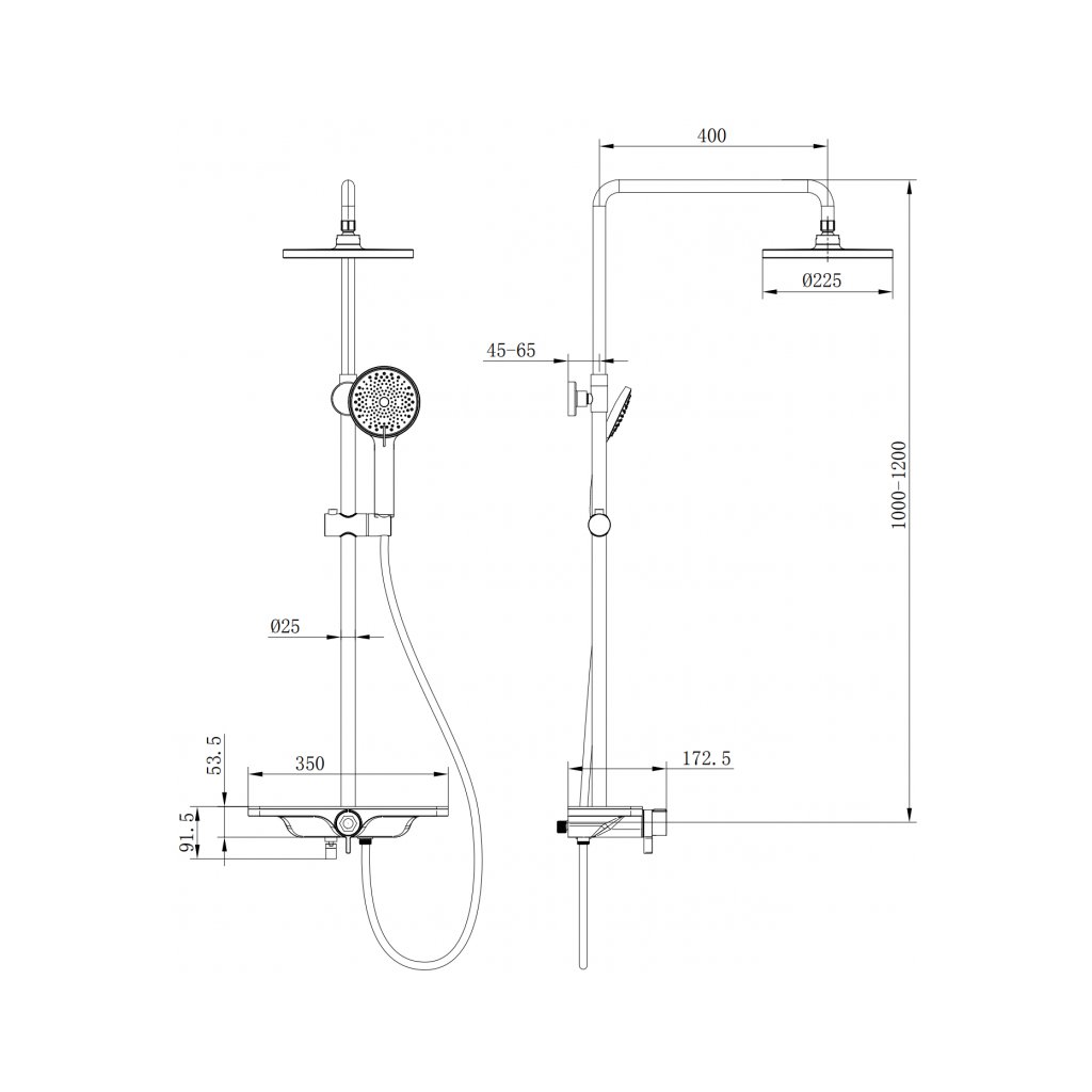 - Veľkosť hlavovej sprchy: ø225 mm