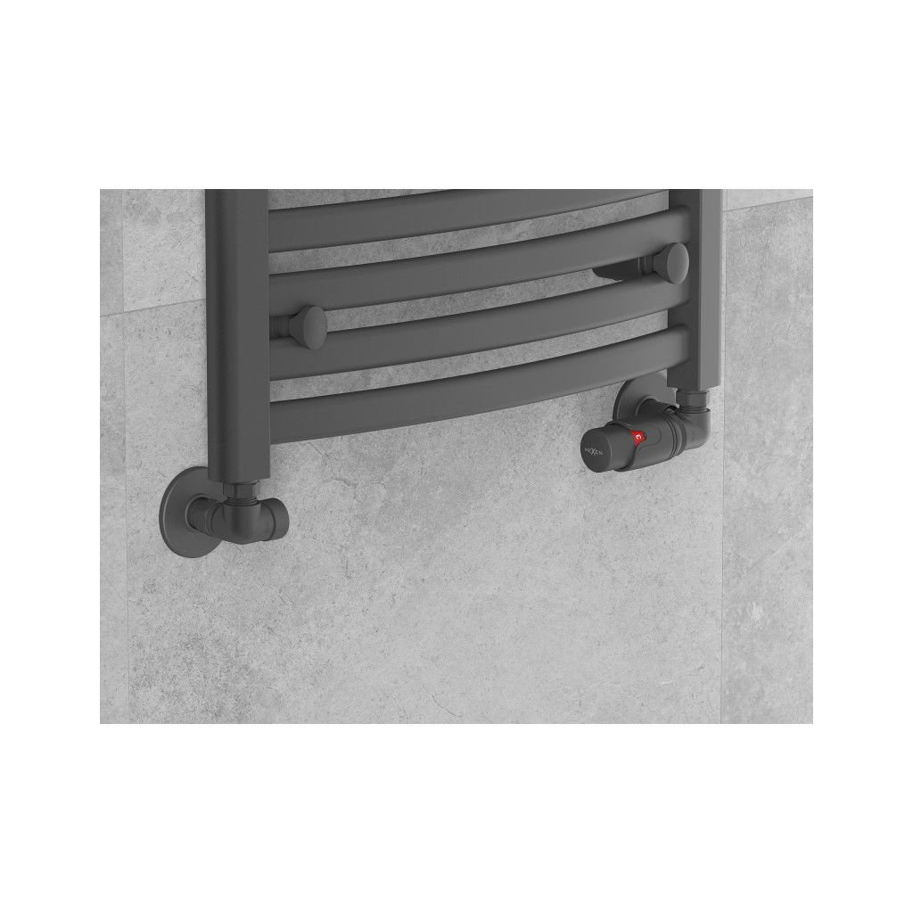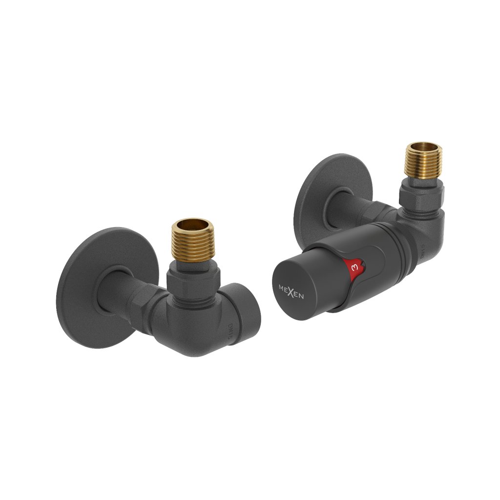 Mexen G00, axiálny ventil G1/2" s okrúhlymi krytkami a termostatickou hlavicou M30x1,5 mm, antracitová, W903-900-904-66