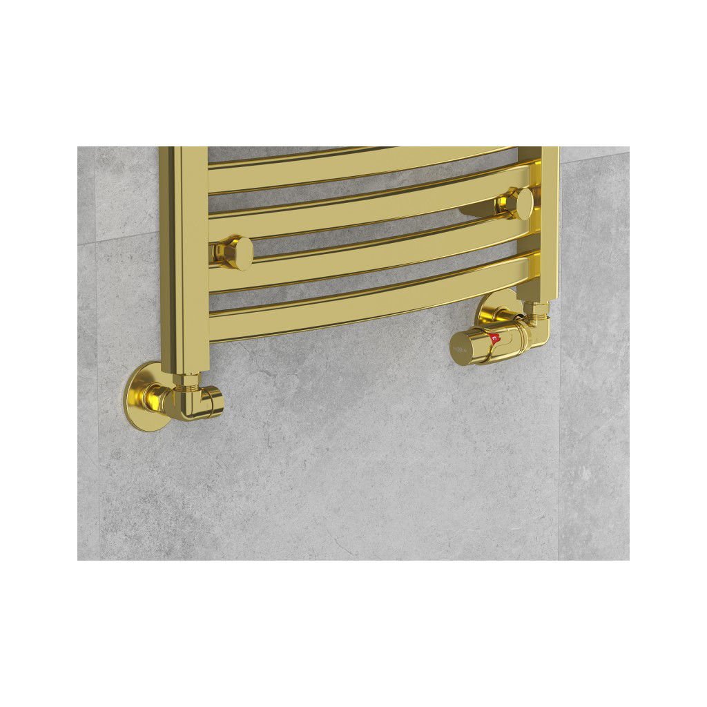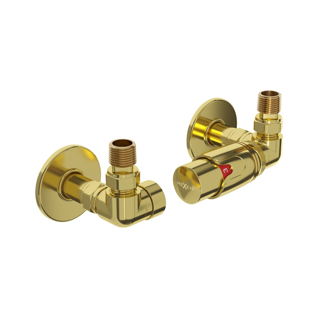 Mexen G00, axiálny ventil G1/2" s okrúhlymi krytkami a termostatickou hlavicou M30x1,5 mm, zlatá lesklá, W903-900-904-50