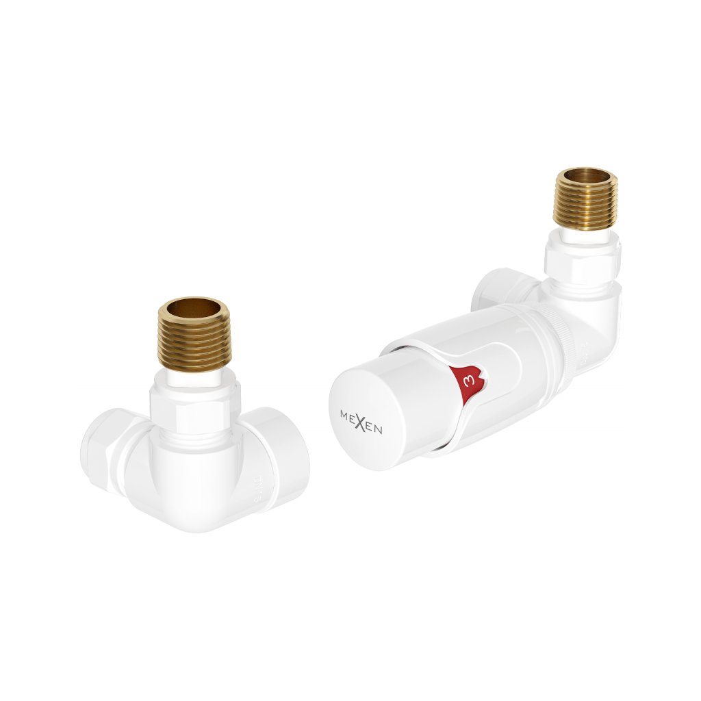 Mexen G00, okrúhly axiálny ventil G1/2" s termostatickou hlavicou M30x1,5 mm, biela, W903-900-20