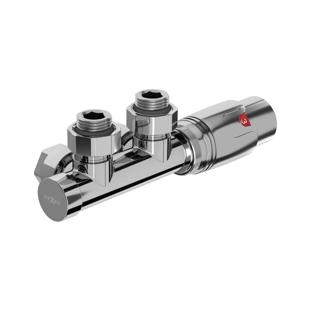 Mexen G00, pripojovacia sada ventilov termostatická pre stredové pripojenie DN50, Duplex, chrómová, W907-900-01