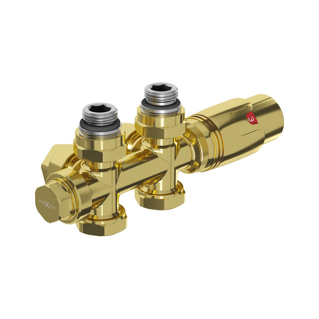Mexen G00, termostatická súprava Duplex, uhlové/rovné pripojenie DN50, zlatá lesklá, W908-900-50