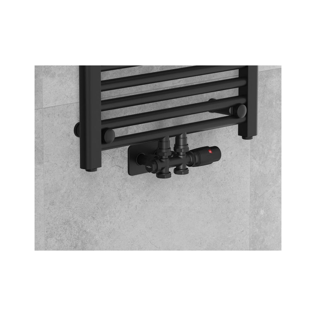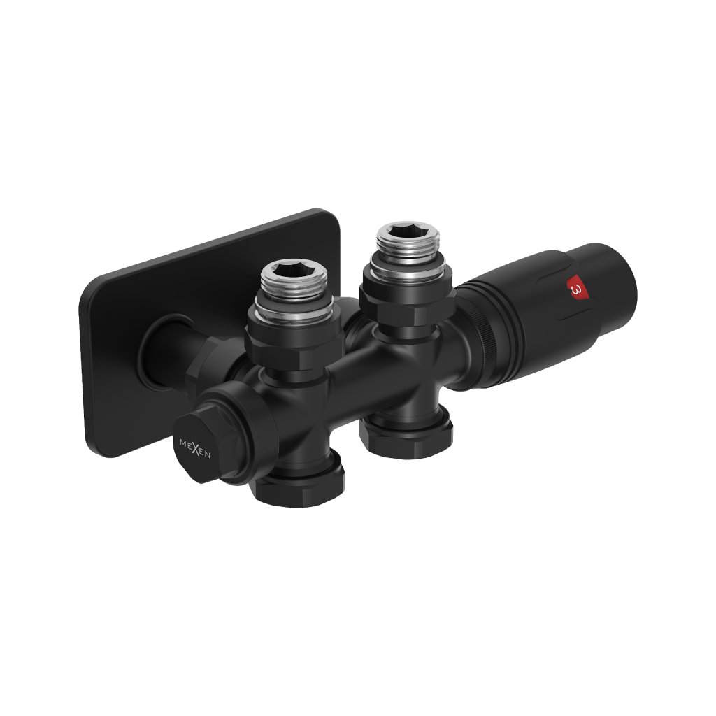 Mexen G00, termostatická súprava Duplex s hranatou krytkou, uhlové/rovné pripojenie DN50, čierna matná, W908-900-910-70