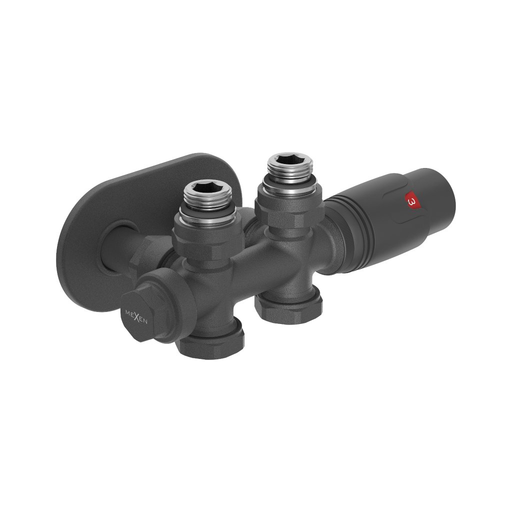 Mexen G00, termostatická súprava Duplex s okrúhlou krytkou, uhlové/rovné pripojenie DN50, antracitová, W908-900-905-66