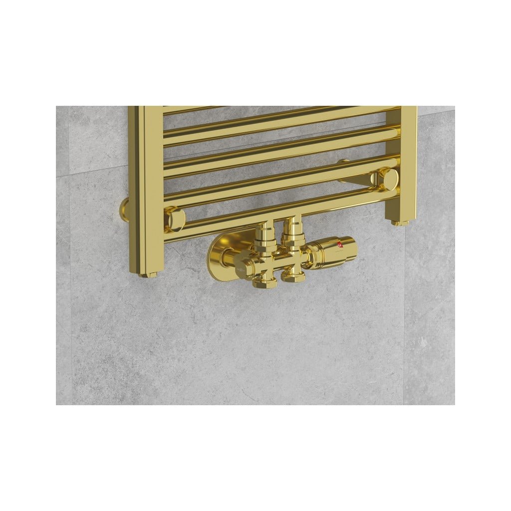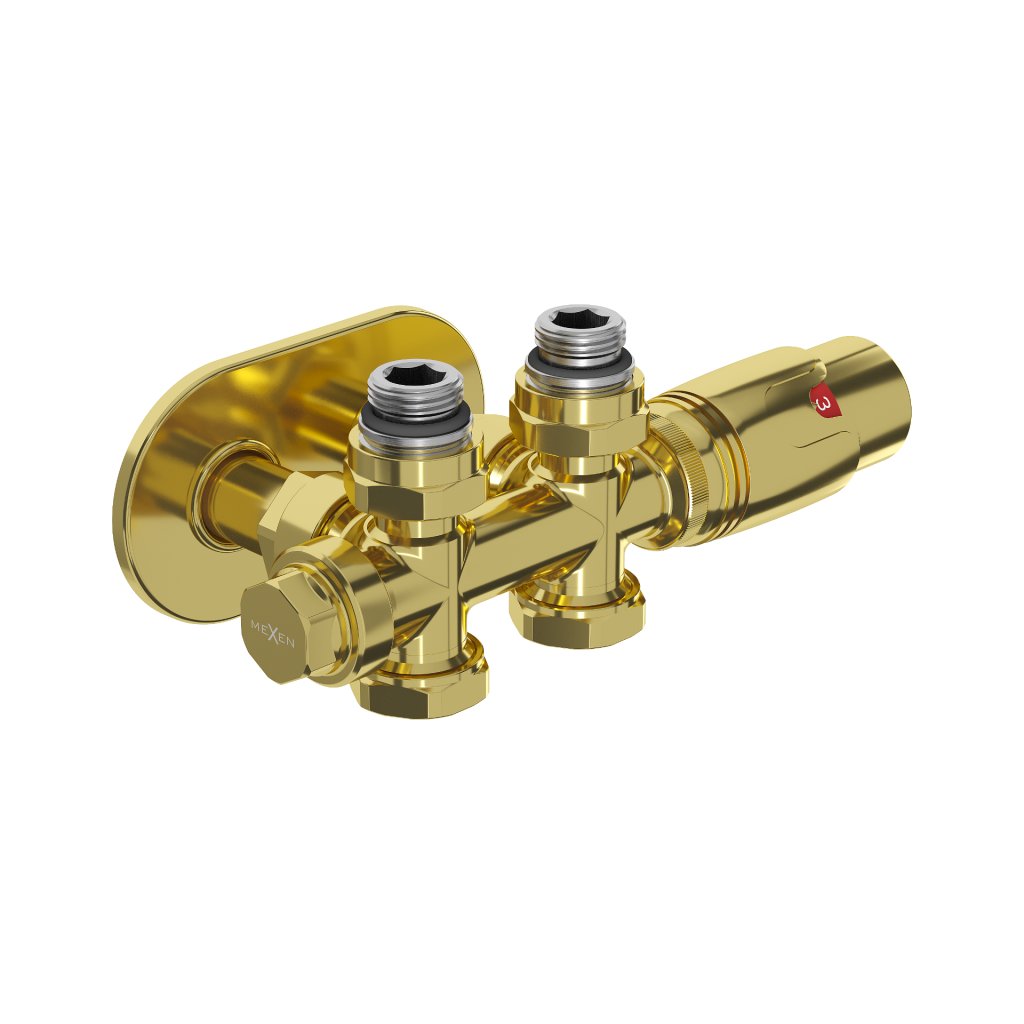 Mexen G00, termostatická súprava Duplex s okrúhlou krytkou, uhlové/rovné pripojenie DN50, zlatá lesklá, W908-900-905-50
