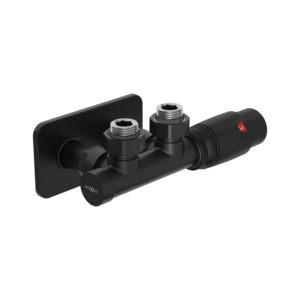 Mexen G00, uhlová termostatická súprava s hranatou krytkou, Duplex DN50, čierna matná, W907-900-910-70