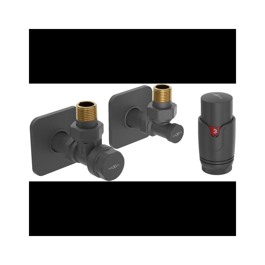 Mexen G00, uhlový ventil G 1/2" s krytkou a termostatickou hlavicou M30x1,5 mm, antracitová, W901-900-909-66