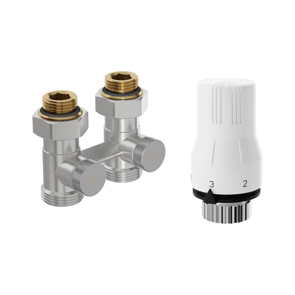 Mexen G02, termostatická sada DN50, priama 1/2"x3/4" a termostatická hlavica M30x1,5 mm, oceľová, W912-012-928-01