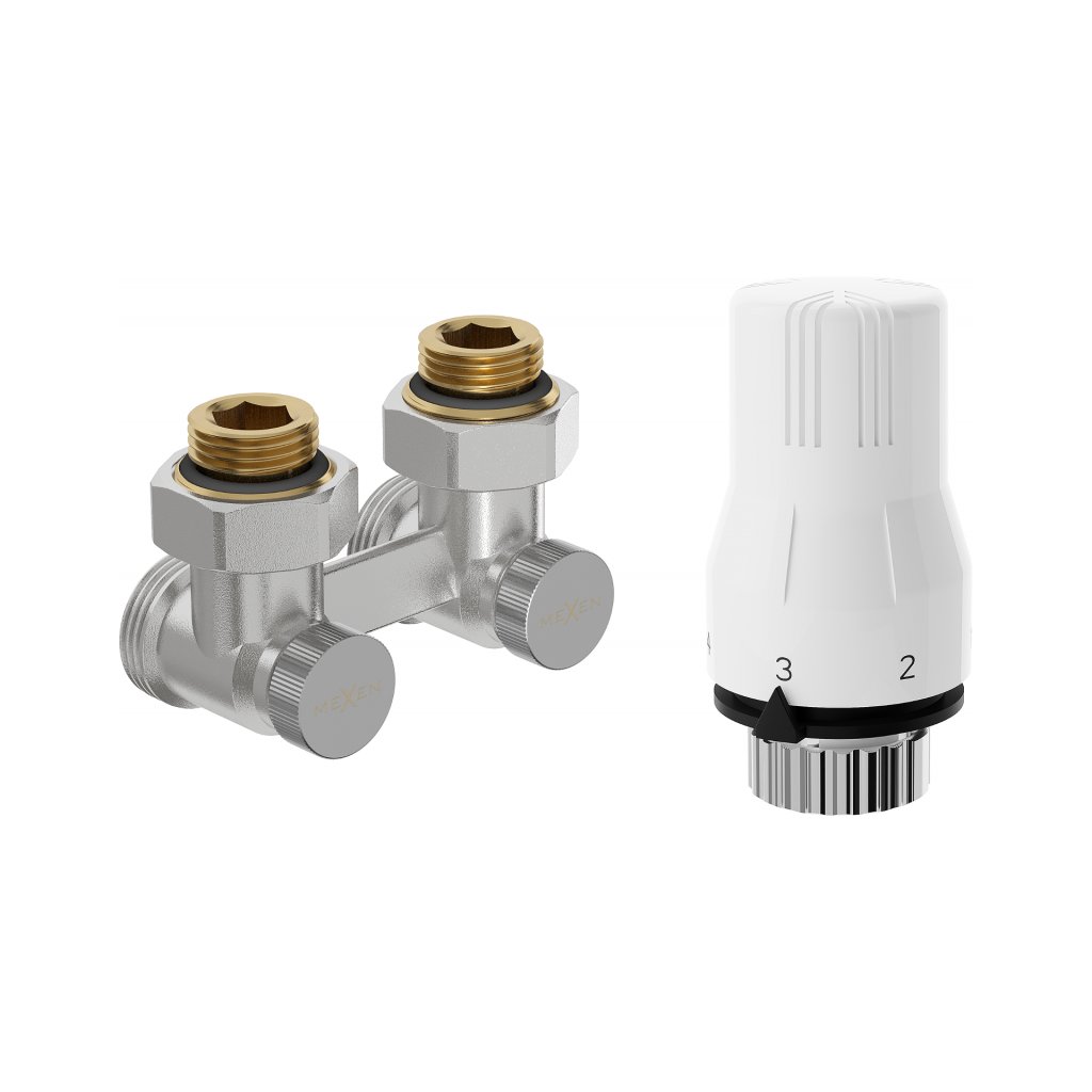 Mexen G02, uhlová termostatická sada 1/2"x3/4" DN50 s termostatickou hlavicou M30x1,5 mm, oceľová, W911-012-928-01