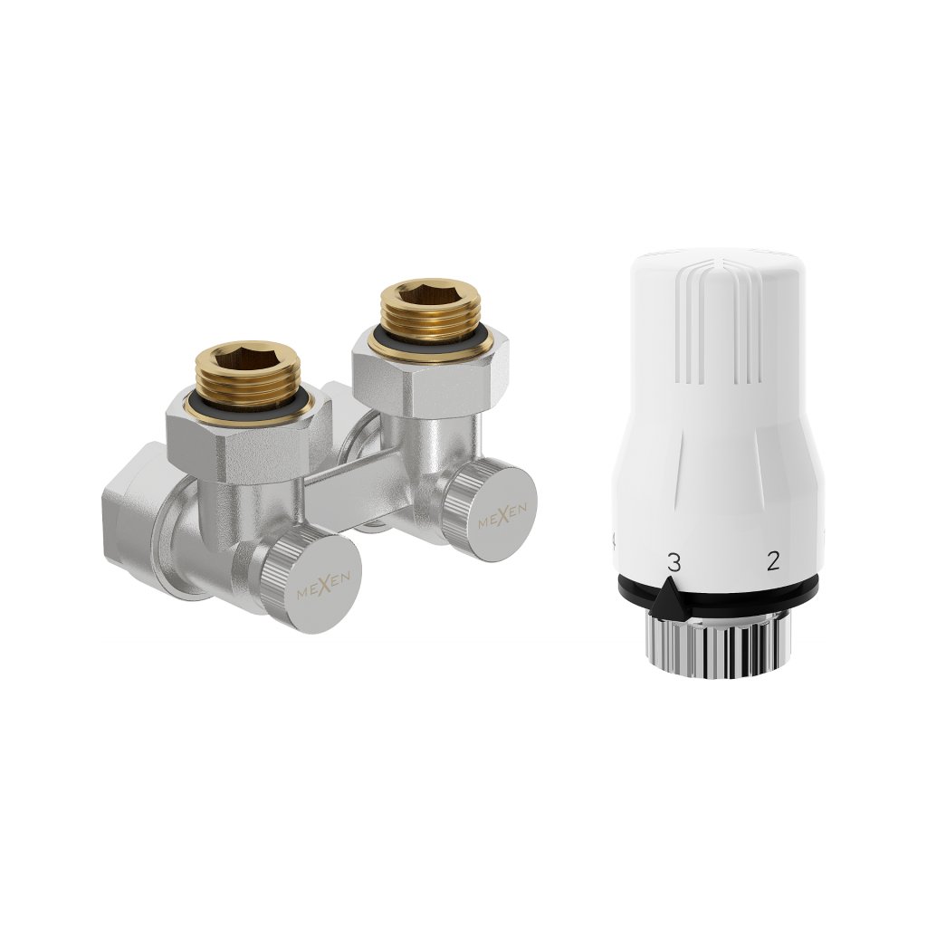 Mexen G02, uhlová termostatická sada DN50, uhlová 1/2"x16 mm s termostatickou hlavicou M30x1,5 mm, oceľová, W911-016-928-01