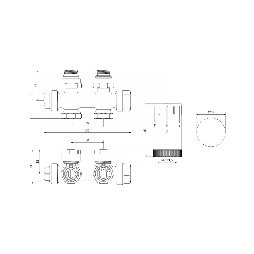 - Sada obsahuje prívod radiátora a uzatvárací ventil