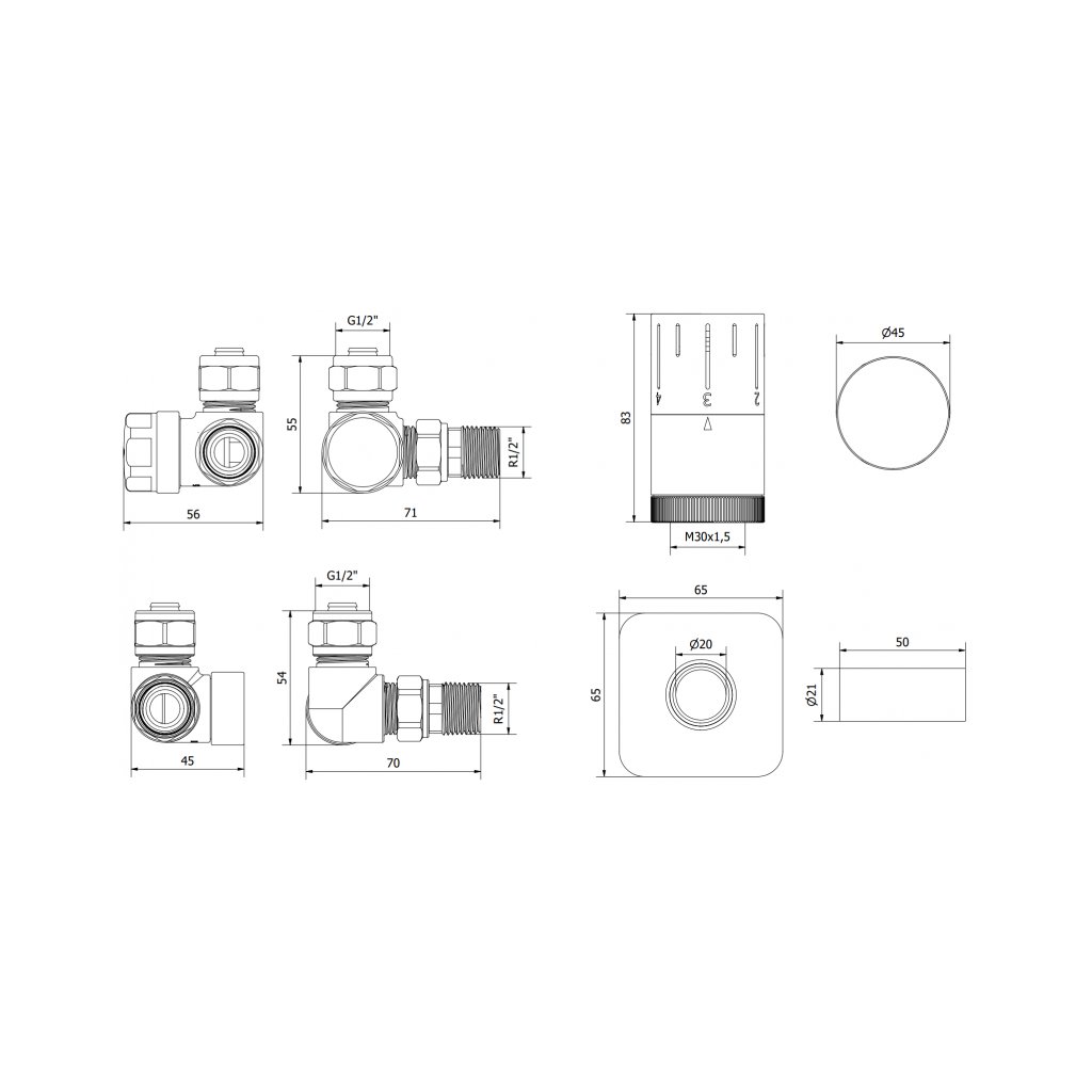 - Závit termostatickej hlavice: M30 x 1,5 mm