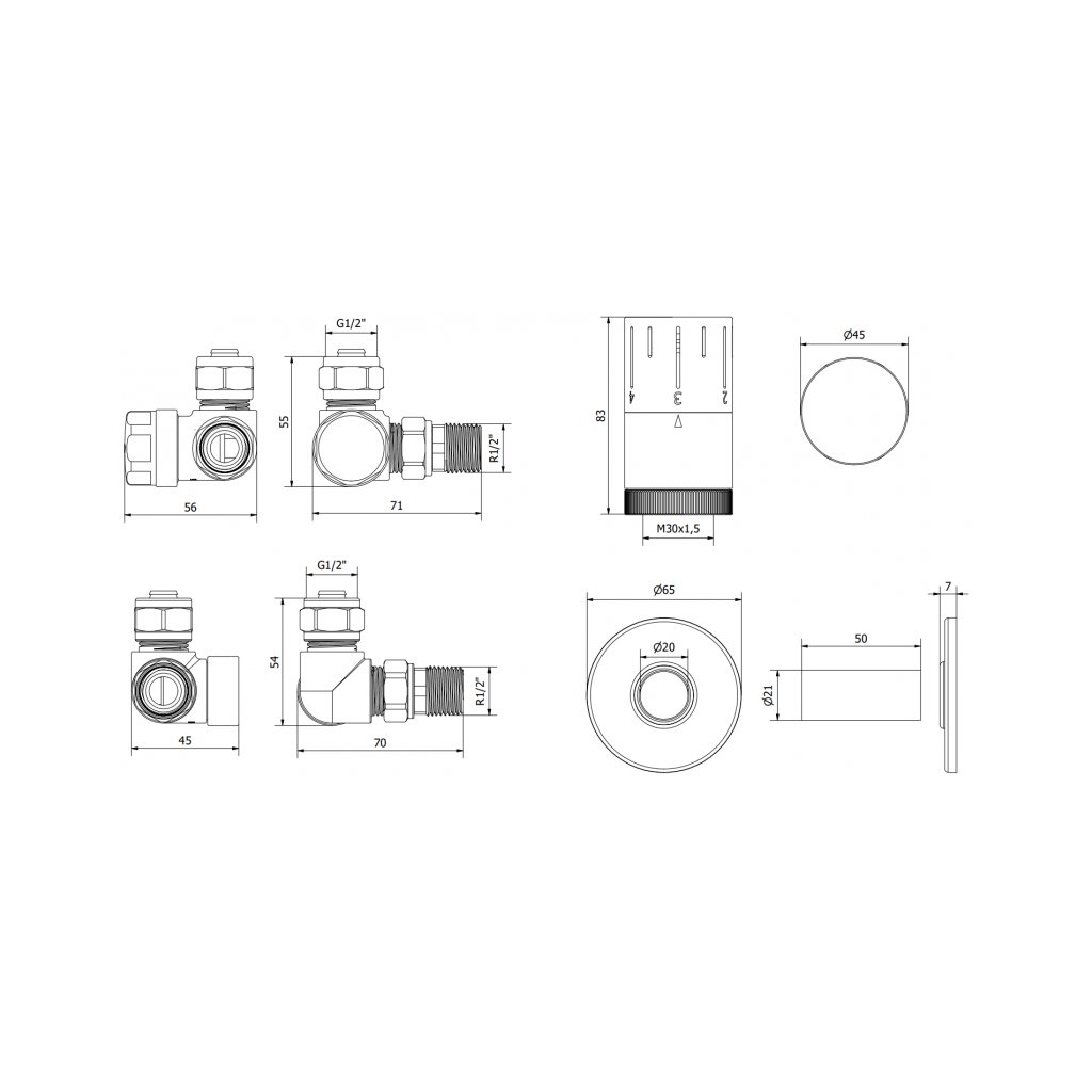 Mexen G05 axiálna termostatická súprava s okrúhlou mriežkou R, biela, W903-958-904-20