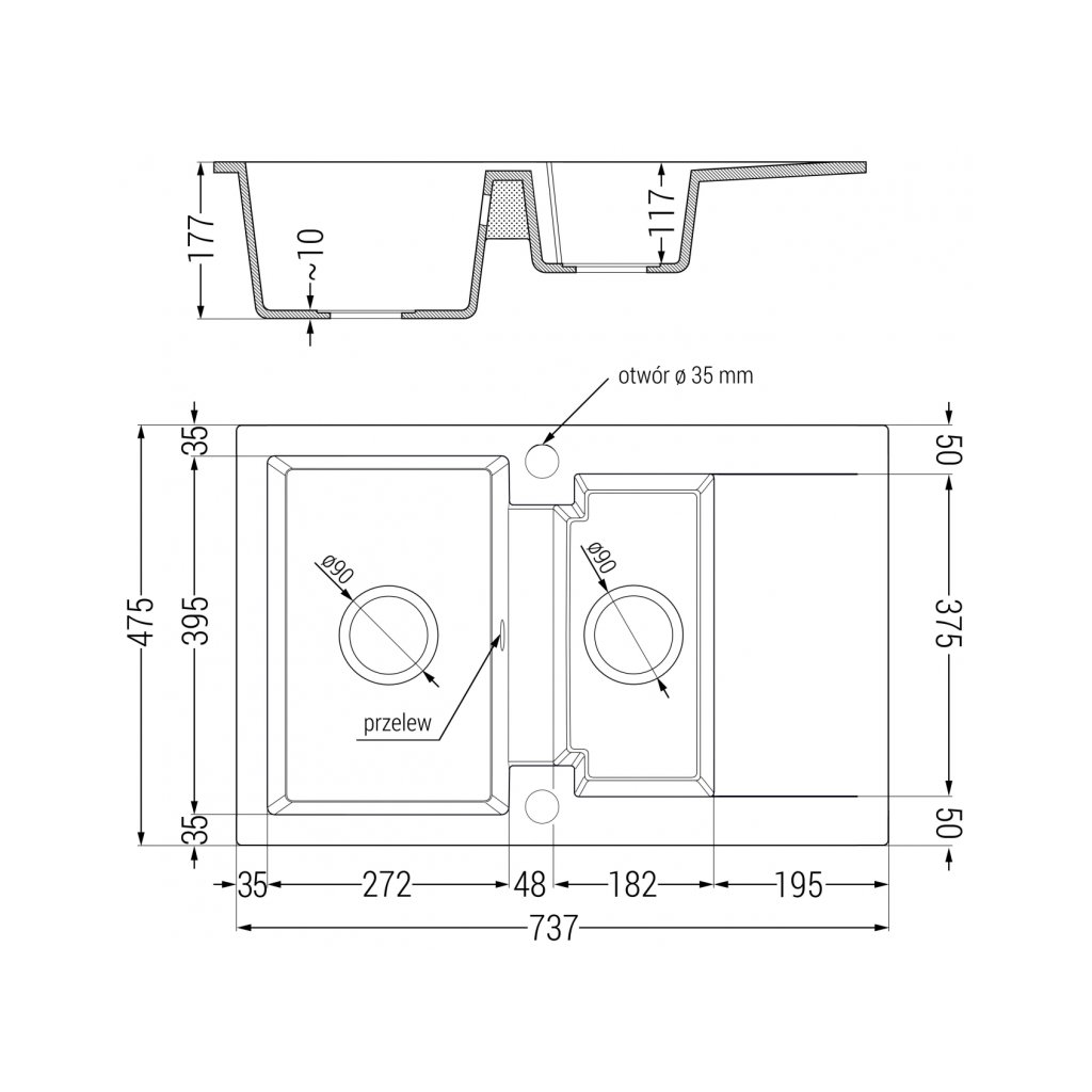 - Odtokový otvor: 3,5 ”;fi = 90 mm