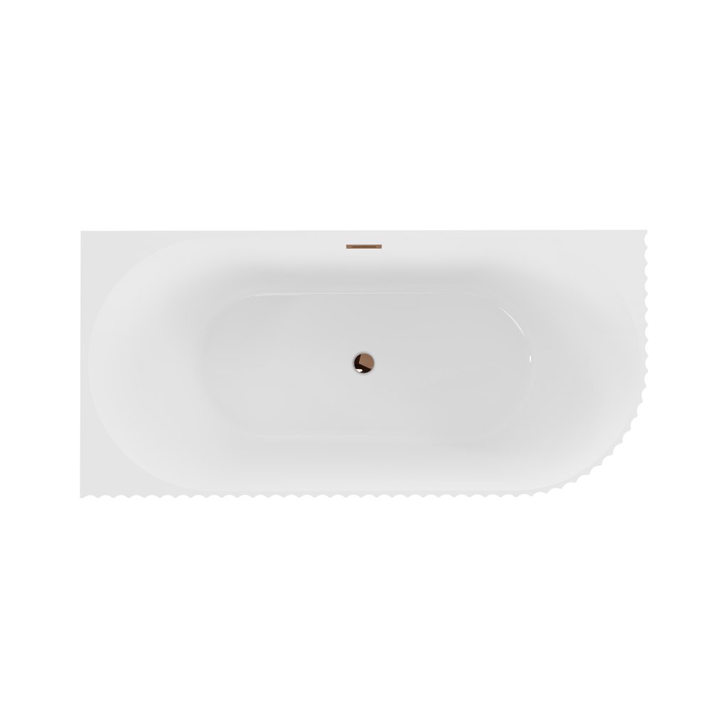 Mexen Gia, voľne stojaca rohová vaňa, drážkovaná, ľavá, 150 x 75 cm, biela lesklá, ružové zlato, 52701507500L-60