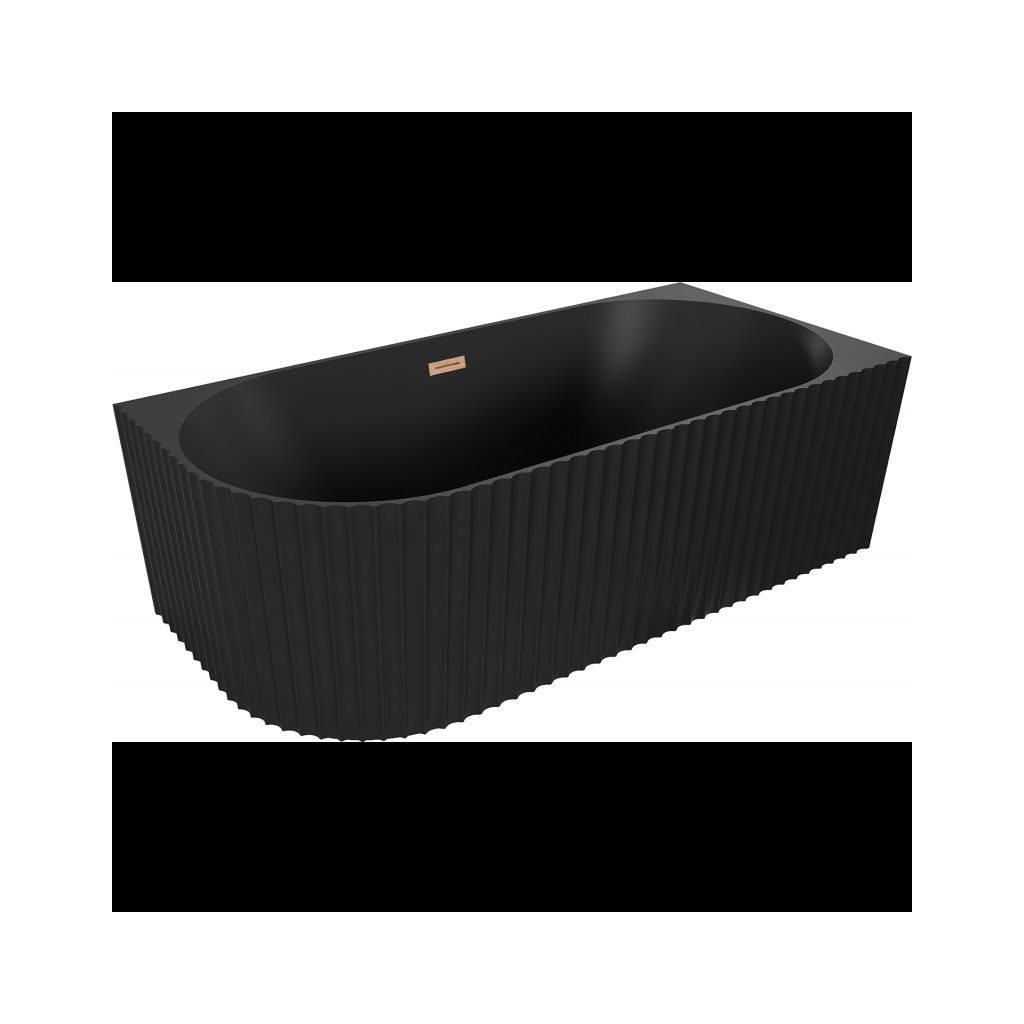 Mexen Gia, voľne stojaca rohová vaňa, drážkovaná, pravá, 150 x 75 cm, čierna matná, medená matná, 52701507571P-65