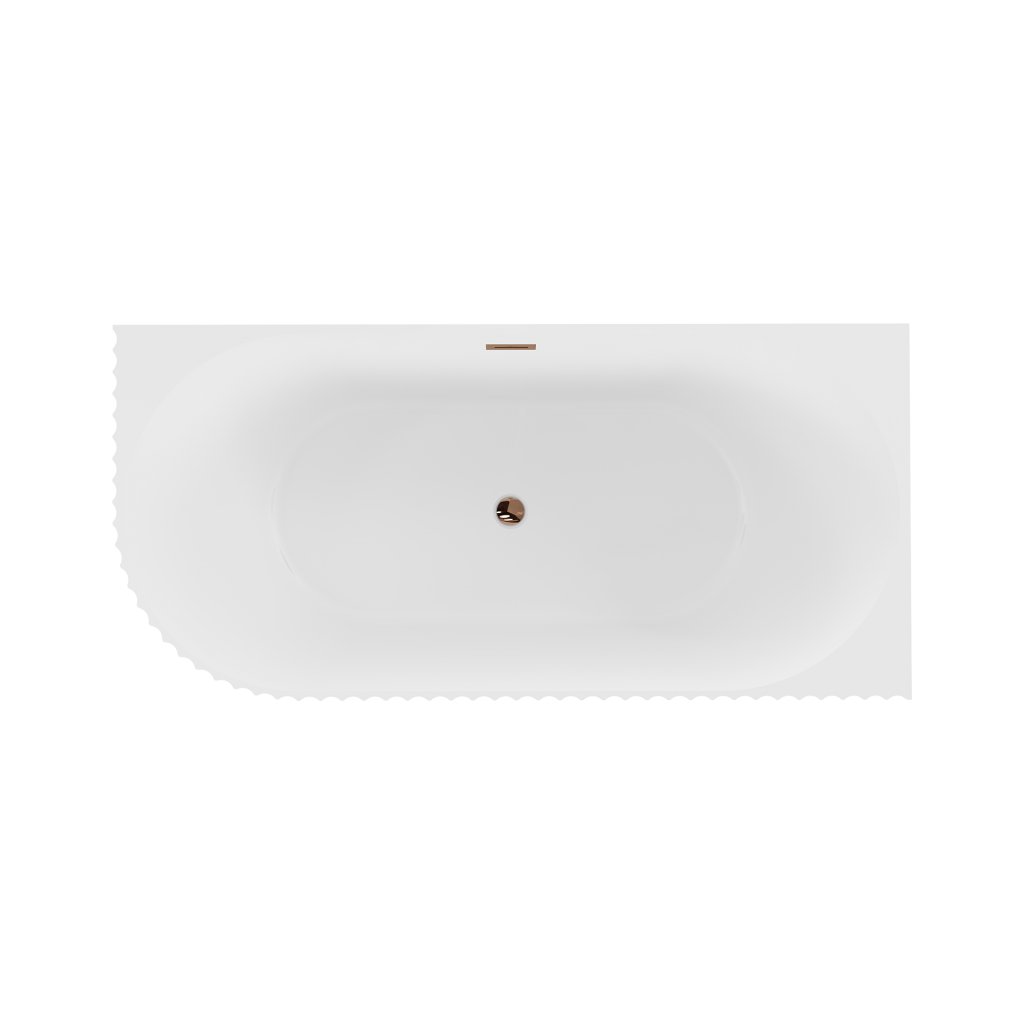 Mexen Gia, voľne stojaca rohová vaňa, drážkovaná, pravá, 170 x 80 cm, biela matná, ružové zlato, 52701708001P-60