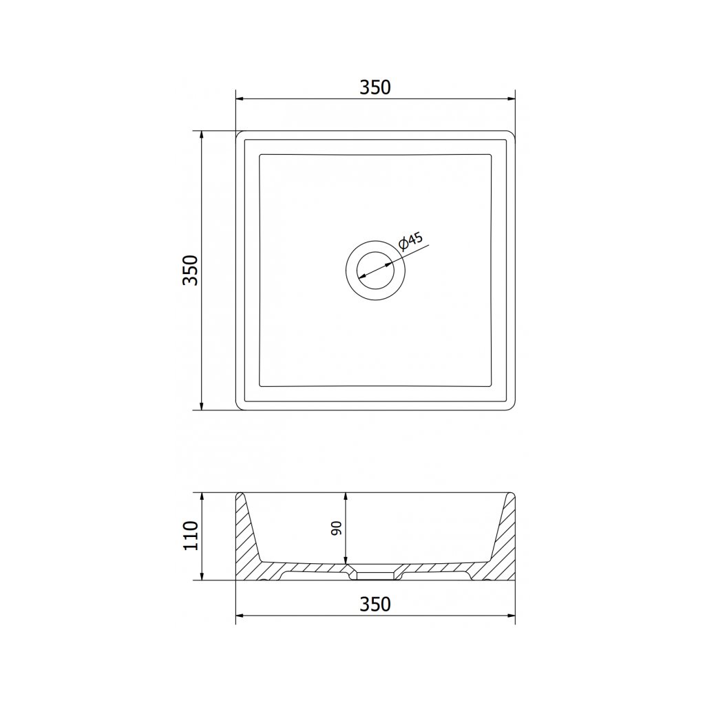 - Rozmery: 350 x 350 x 110 mm