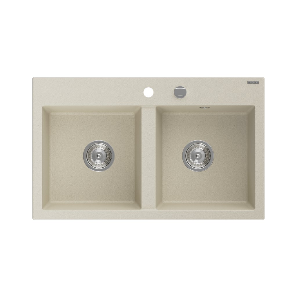 Mexen Hektor, 2-komorový granitový drez 800x480x205 mm, béžová, chrómový sifón, 6521802000-69