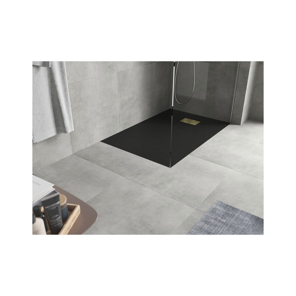 Mexen Hugo, obdĺžniková sprchová vanička SMC 100 x 70 cm, čierna, zlatá krytka, 42707010-G