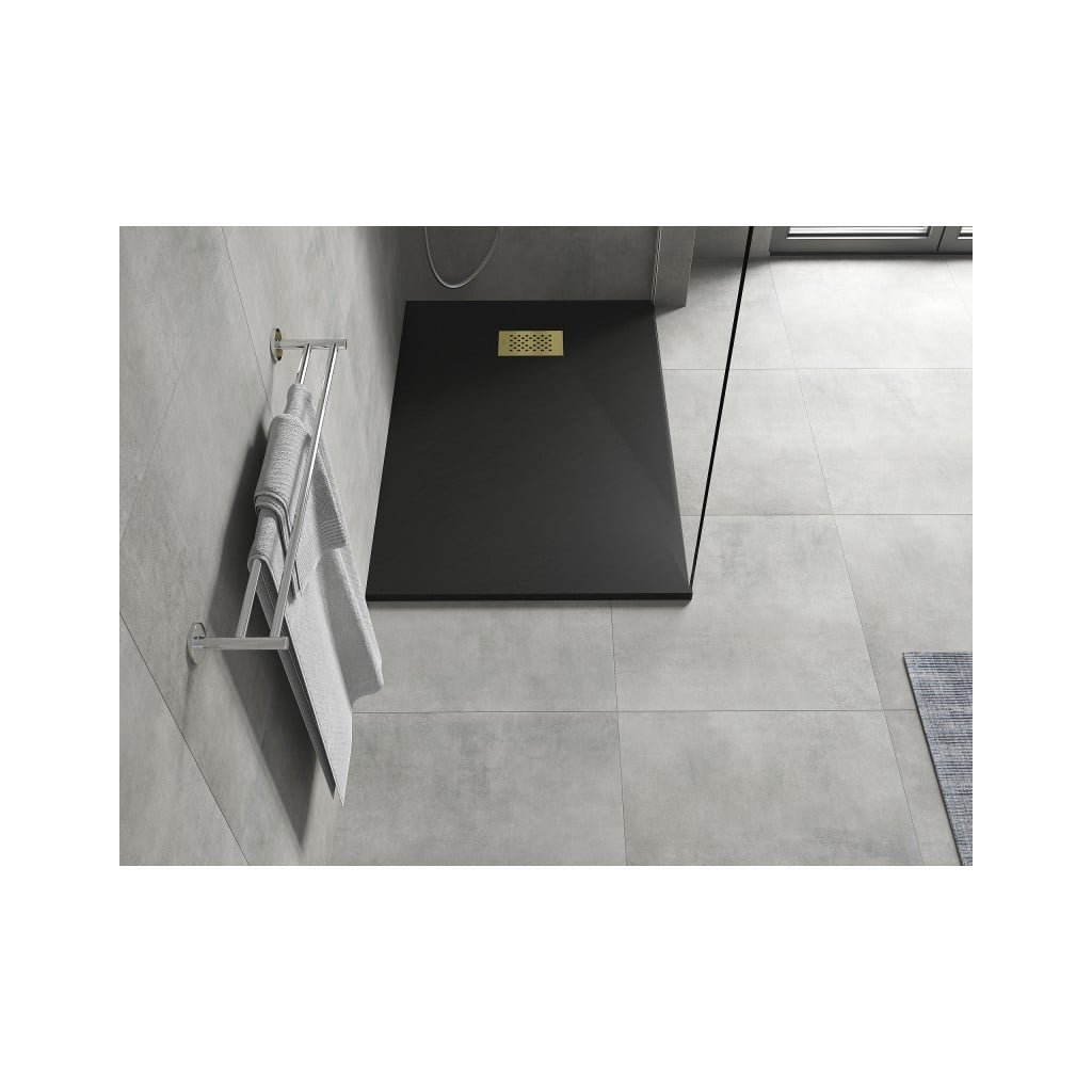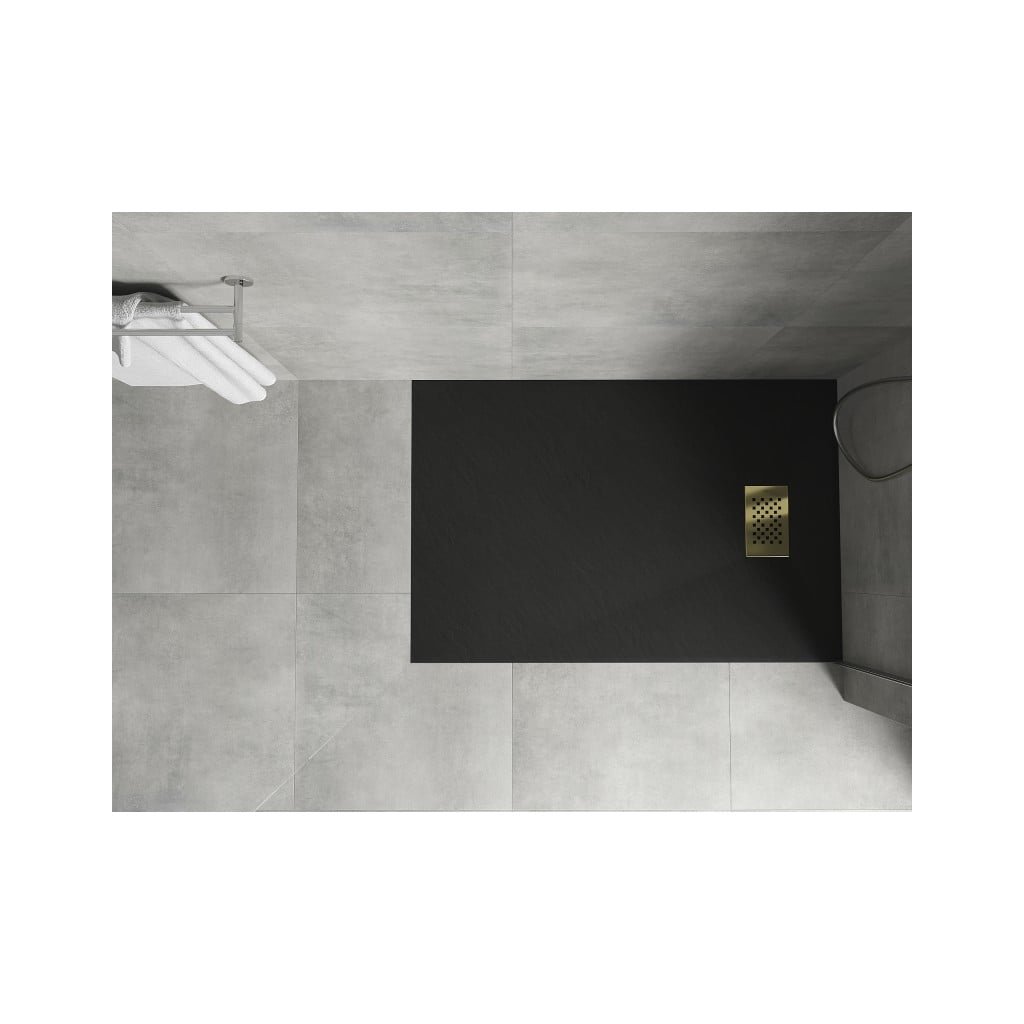 Mexen Hugo, obdĺžniková sprchová vanička SMC 120 x 90 cm, čierna, zlatá krytka, 42709012-G