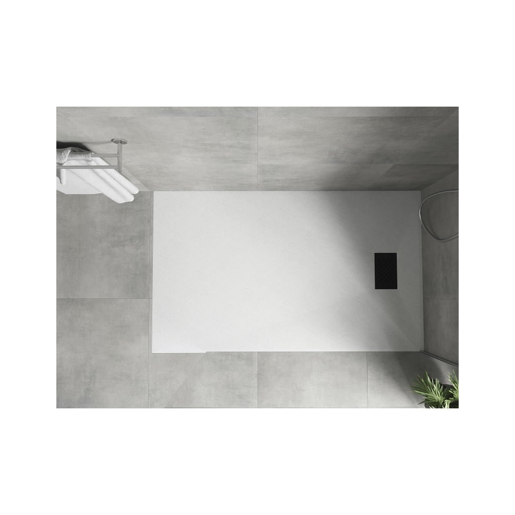 Mexen Hugo, obdĺžniková sprchová vanička SMC 140 x 80 cm, biela, čierna krytka, 42108014-B