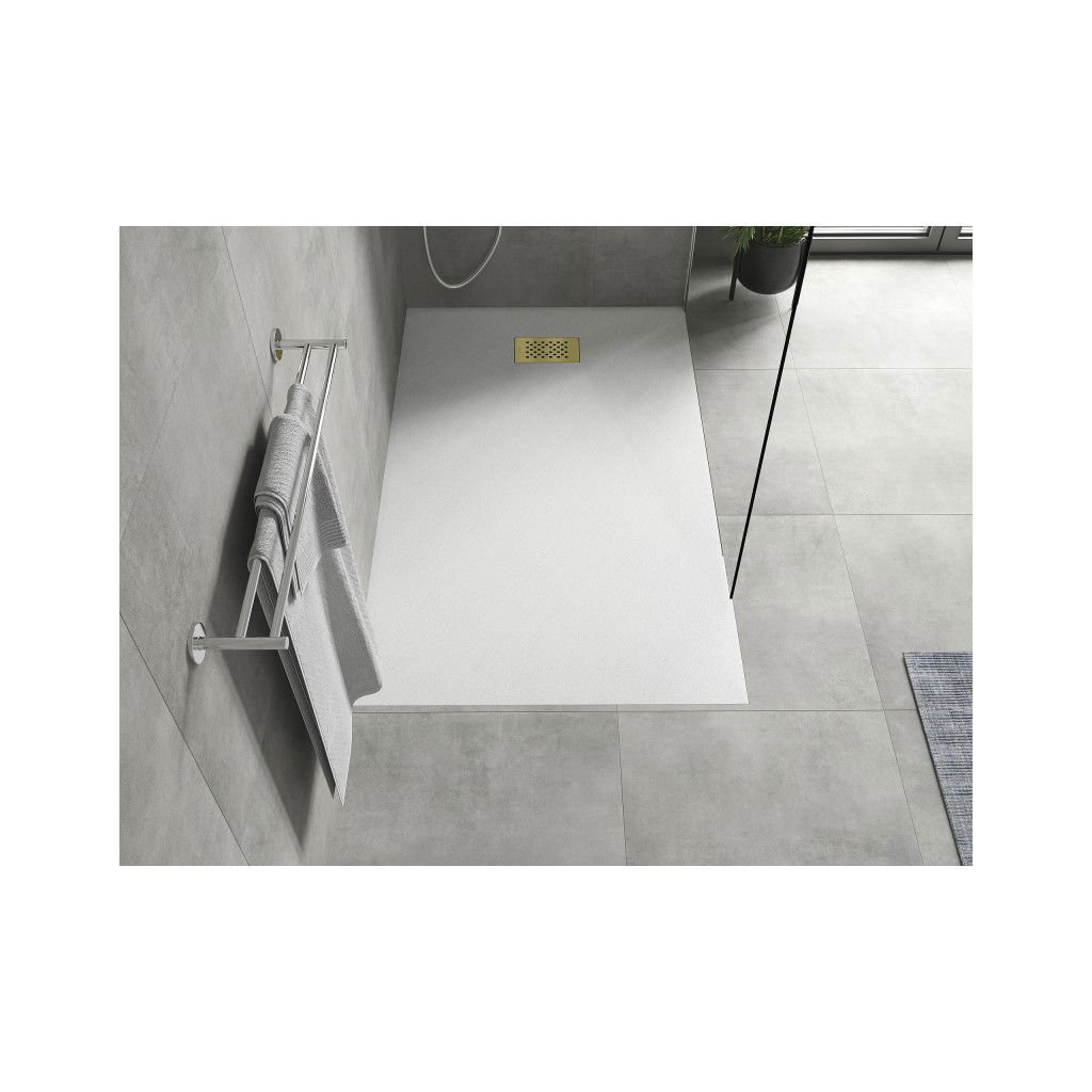 Mexen Hugo, obdĺžniková sprchová vanička SMC 140 x 80 cm, biela, zlatá krytka, 42108014-G