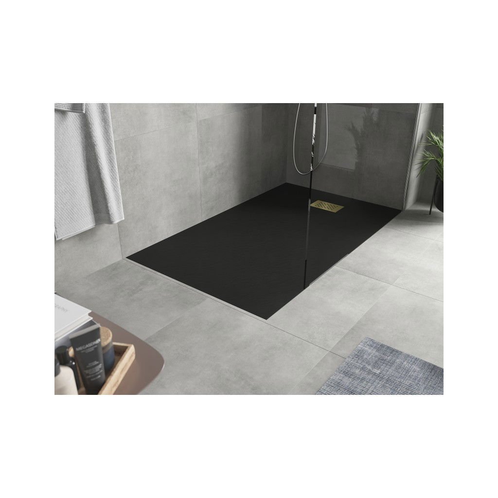 Mexen Hugo, obdĺžniková sprchová vanička SMC 140 x 90 cm, čierna, zlatá krytka, 42709014-G