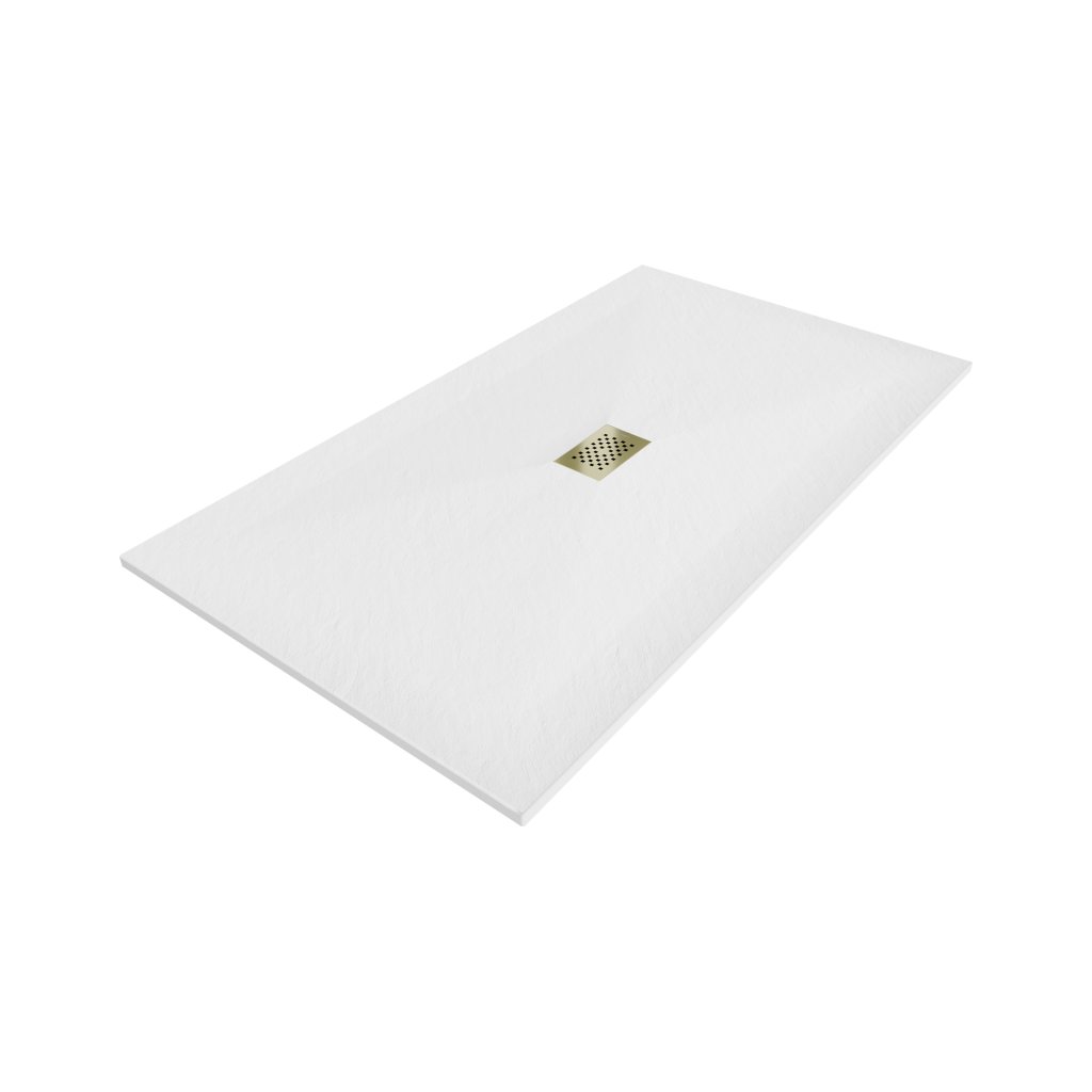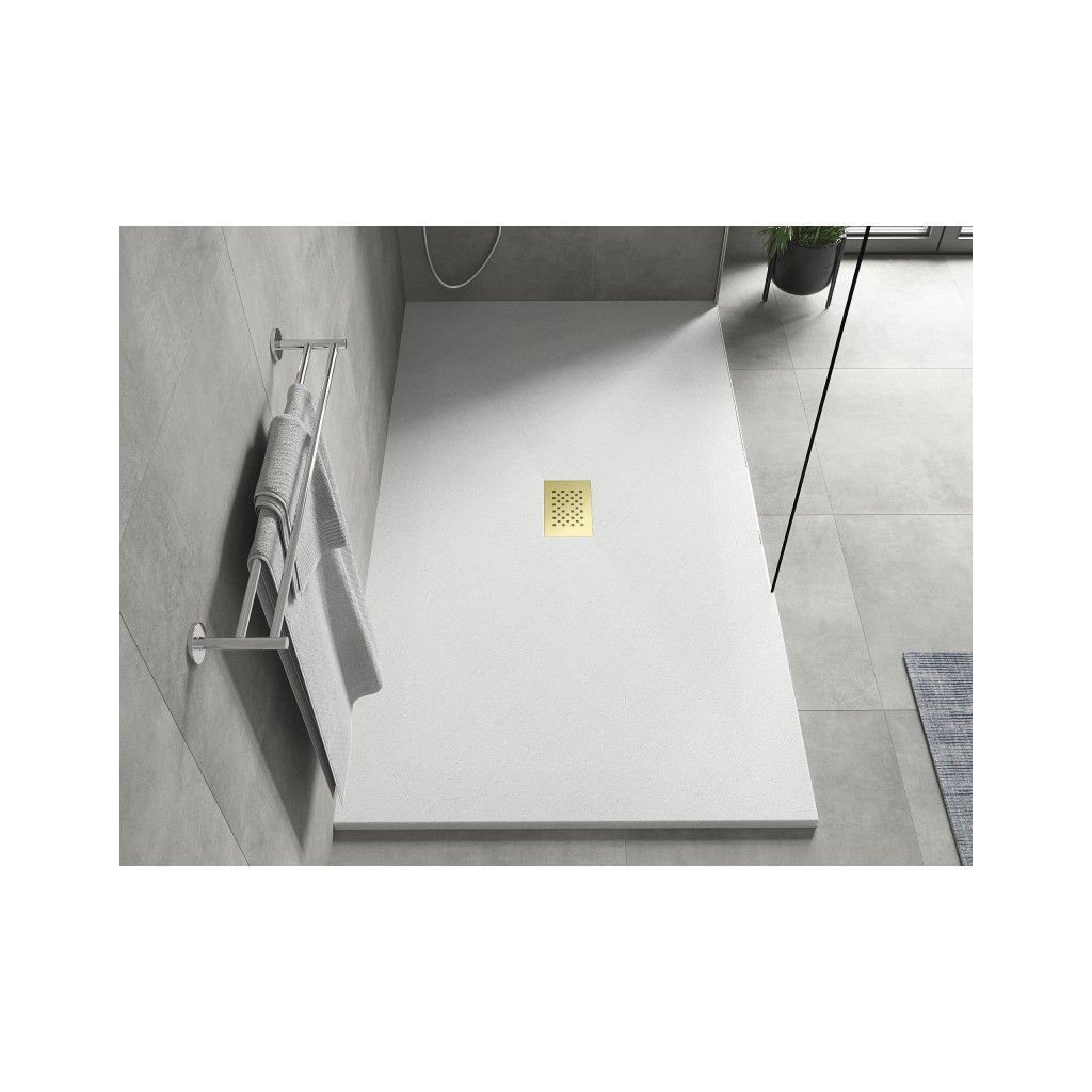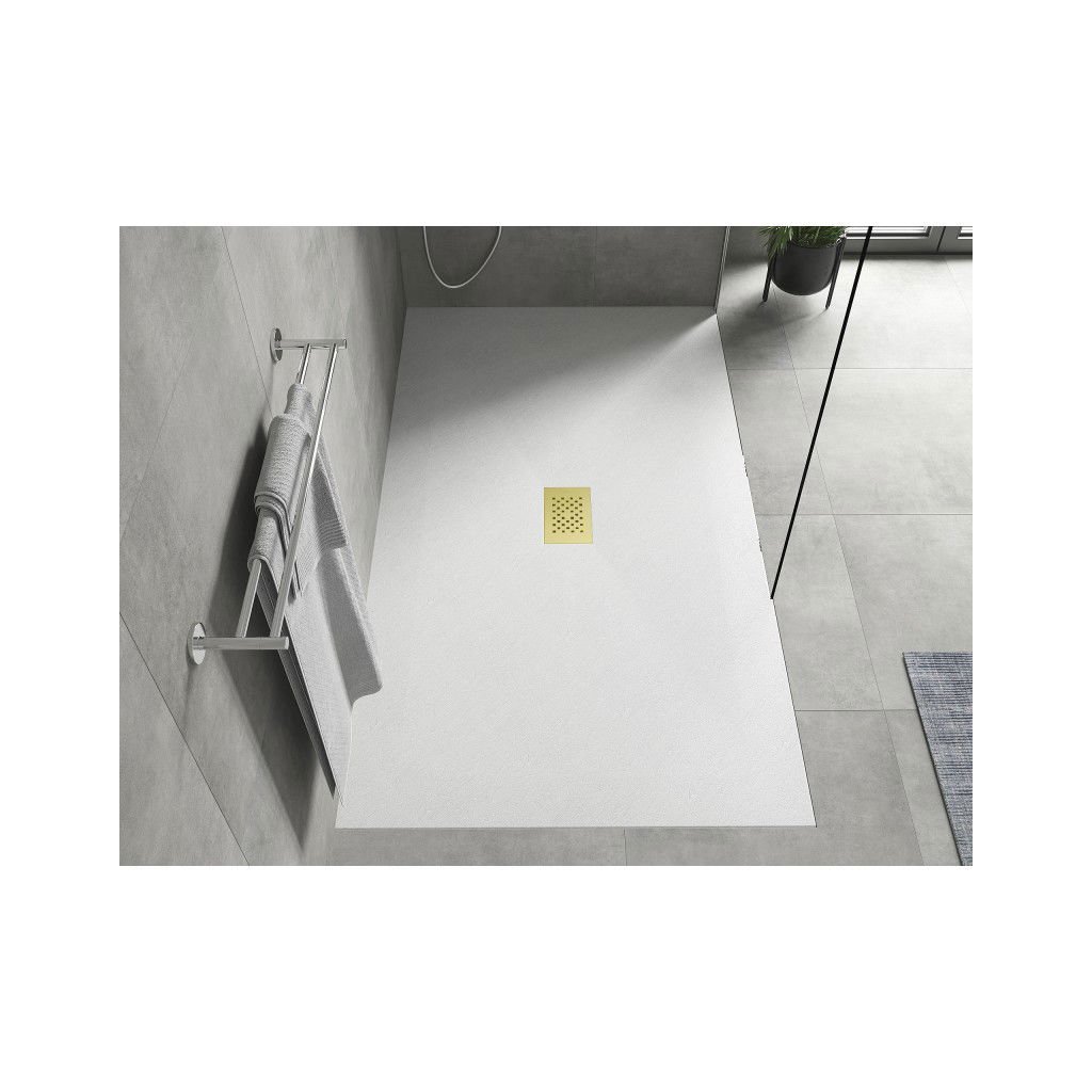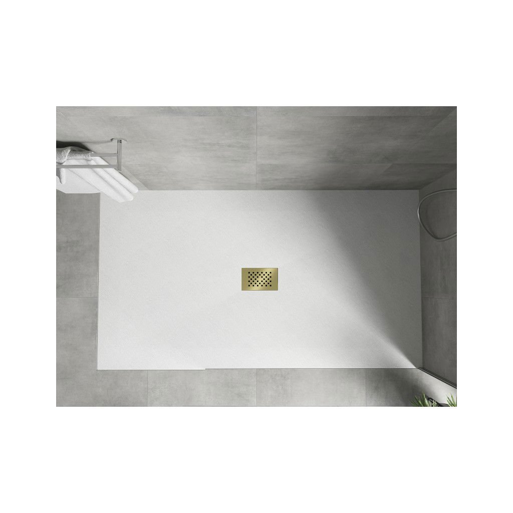 Mexen Hugo, obdĺžniková sprchová vanička SMC 150 x 100 cm, biela, zlatá krytka, 42101015-G