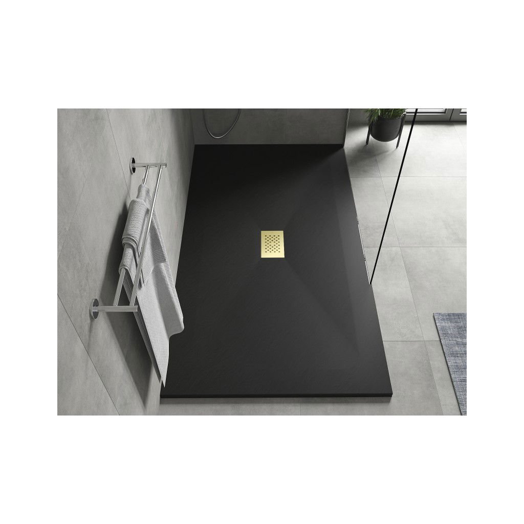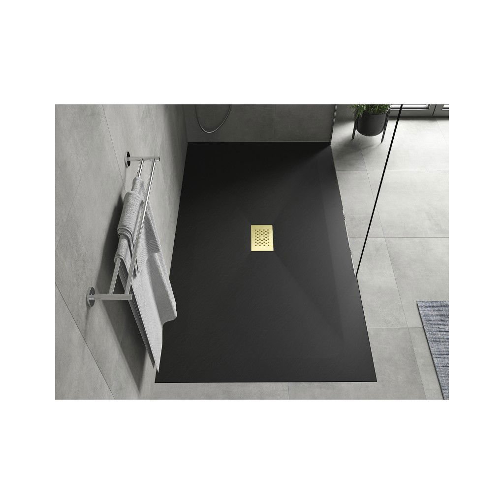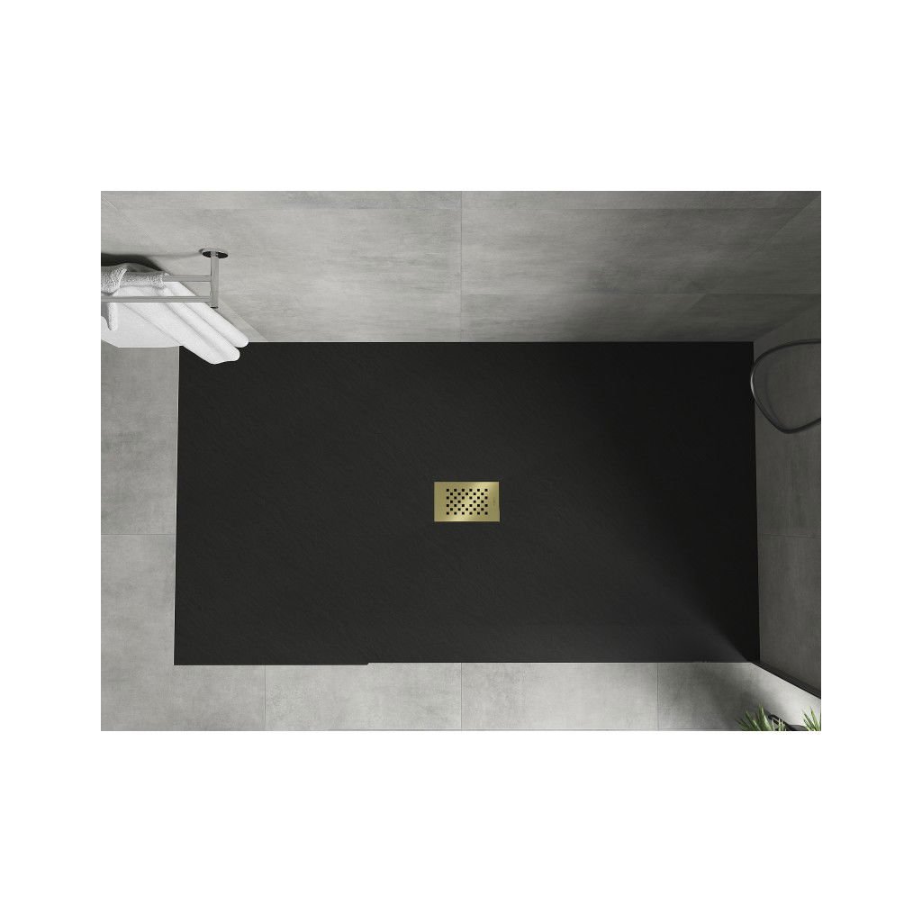Mexen Hugo, obdĺžniková sprchová vanička SMC 150 x 100 cm, čierna, zlatá krytka, 42701015-G