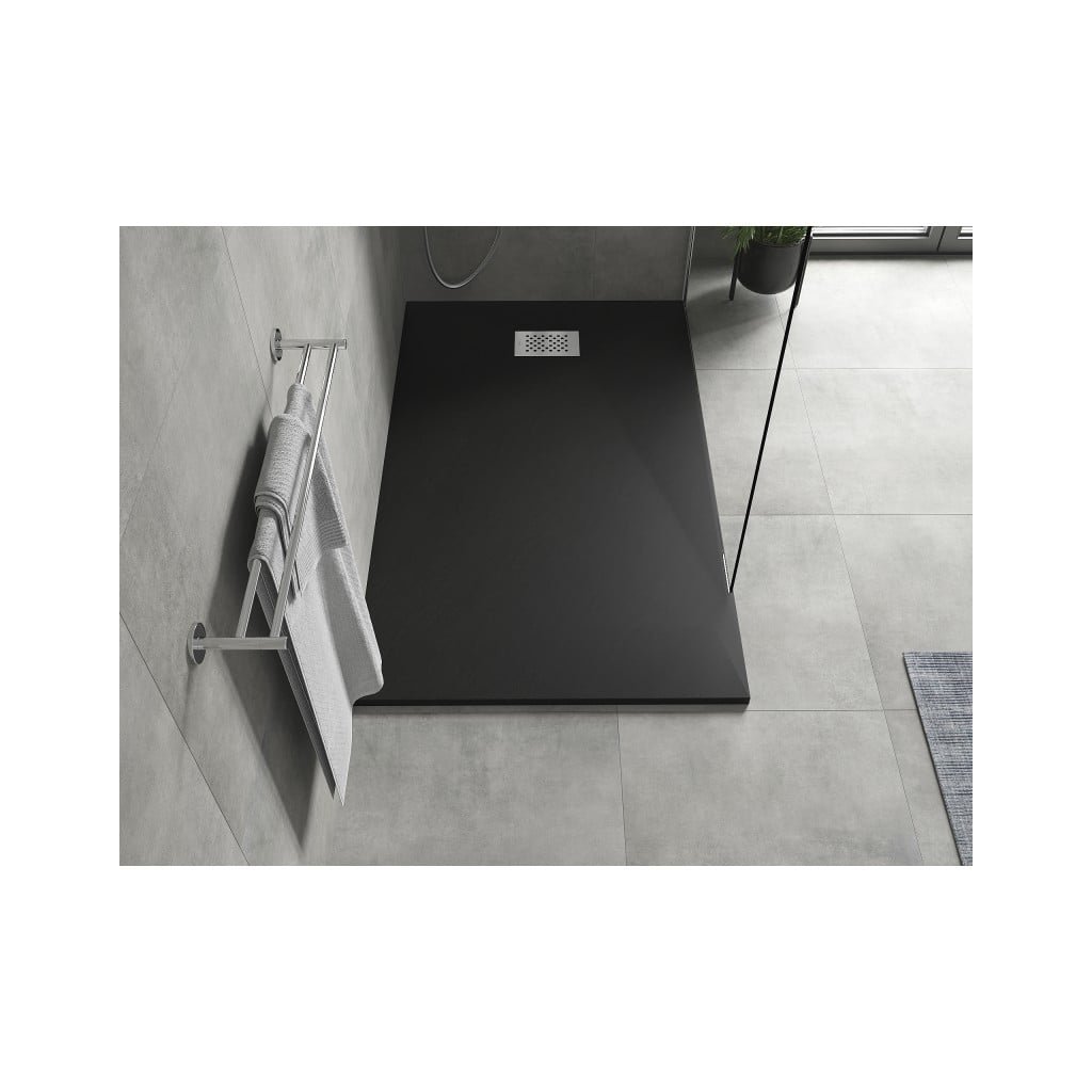 Mexen Hugo, obdĺžniková sprchová vanička SMC 160 x 80 cm, čierna, oceľová krytka, 42708016-X