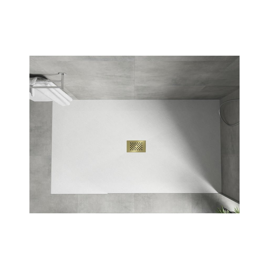 Mexen Hugo, obdĺžniková sprchová vanička SMC 180 x 100 cm, biela, zlatá krytka, 42101018-G