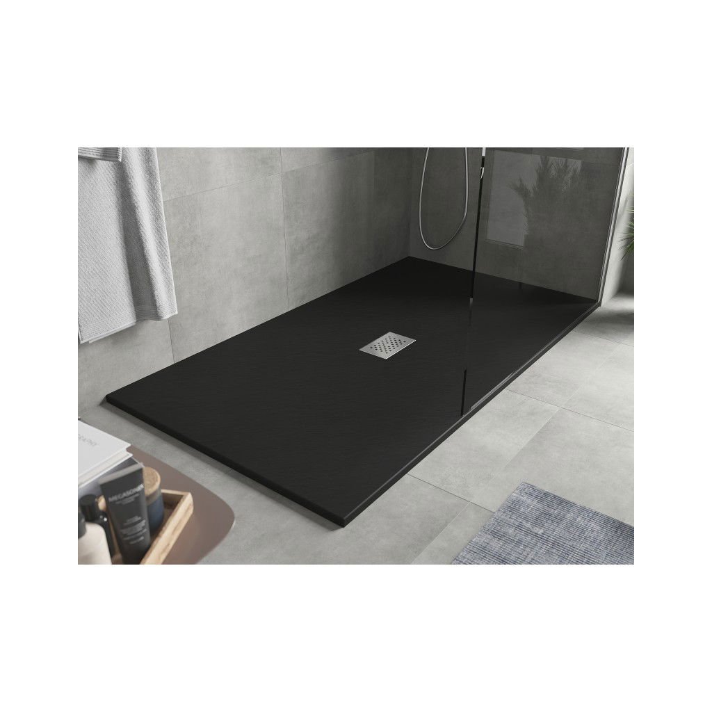 Mexen Hugo, obdĺžniková sprchová vanička SMC 180 x 100 cm, čierna, oceľová krytka, 42701018-X