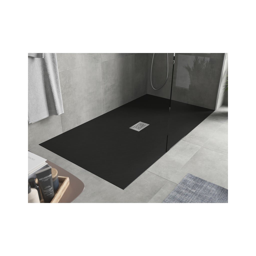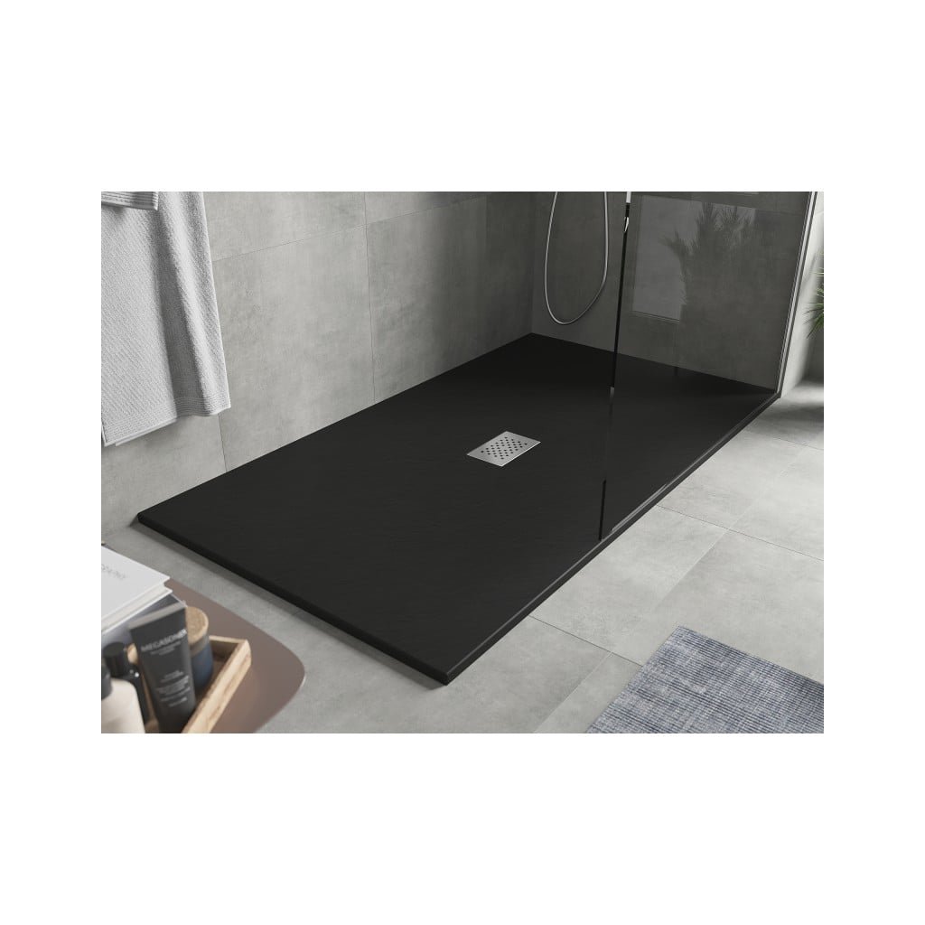 Mexen Hugo, obdĺžniková sprchová vanička SMC 200 x 100 cm, čierna, oceľová krytka, 42701020-X