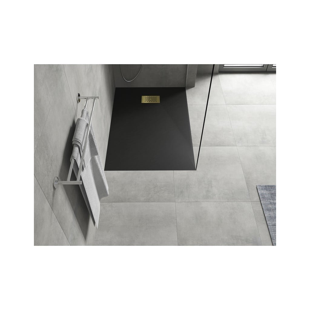 Mexen Hugo, obdĺžniková sprchová vanička SMC 90 x 70 cm, čierna, zlatá krytka, 42707090-G