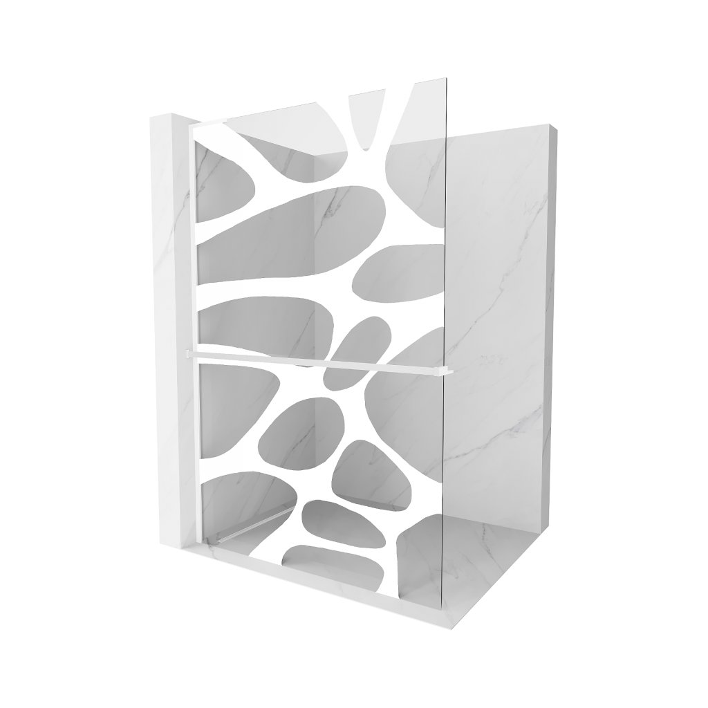 Mexen Kioto+ L, sprchová zástena Walk-In s poličkou a vešiakom 100 x 200 cm, 8mm číre sklo biely vzor, biely profil, 800-100-123-20-97