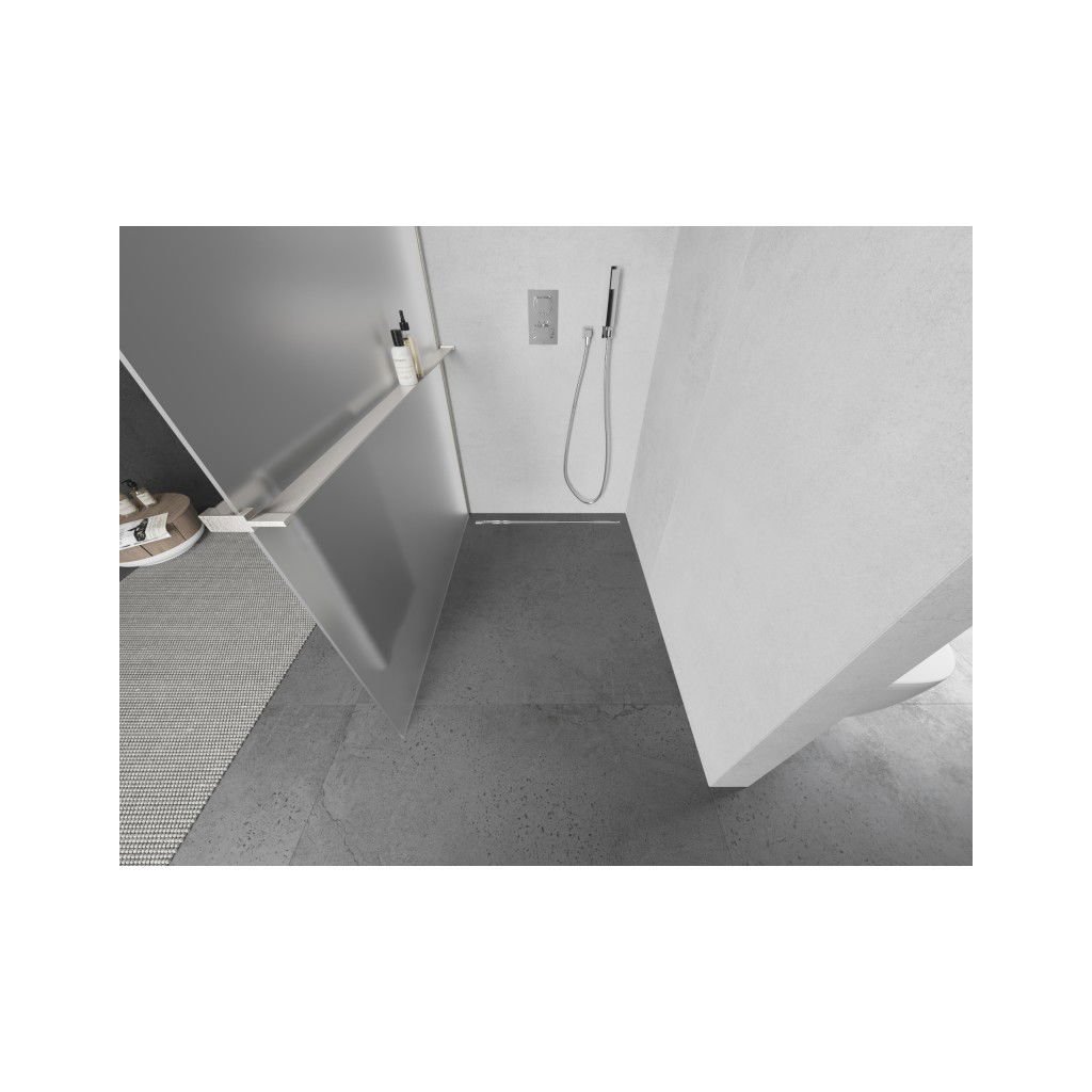 Mexen Kioto+ L, sprchová zástena Walk-In s poličkou a vešiakom 100 x 200 cm, 8mm sklo námraza, brúsená oceľ profil, 800-100-123-97-30