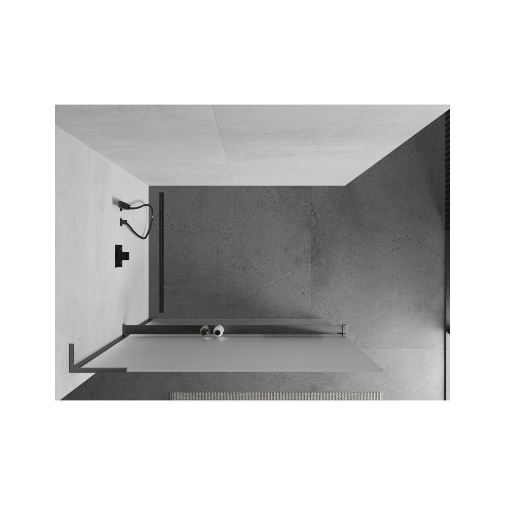 Mexen Kioto+ L, sprchová zástena Walk-In s poličkou a vešiakom 100 x 200 cm, 8mm sklo námraza, grafitový profil, 800-100-123-66-30